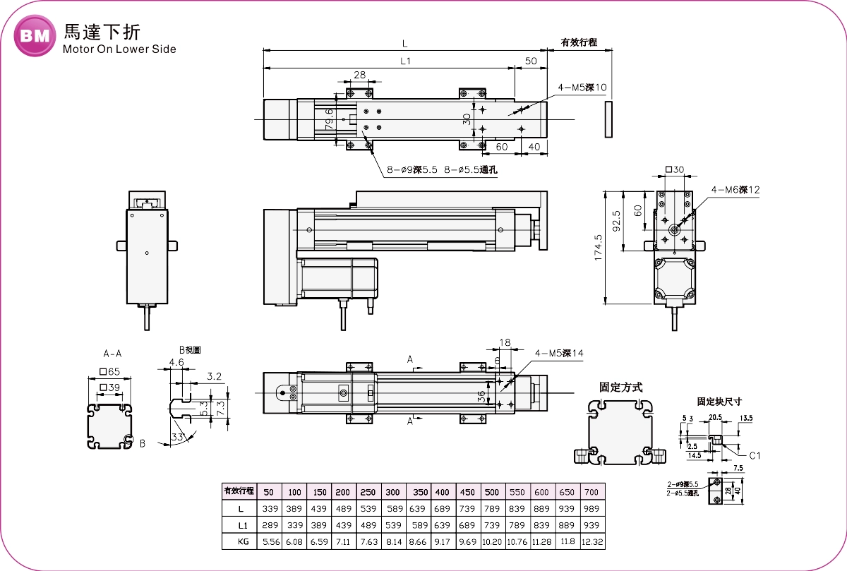 | 標準環境 | 滾珠螺桿 | EC 50 | 100瓦 | 52 | ±0.01 | 12 | 5 | 30 | 12 | 250 |