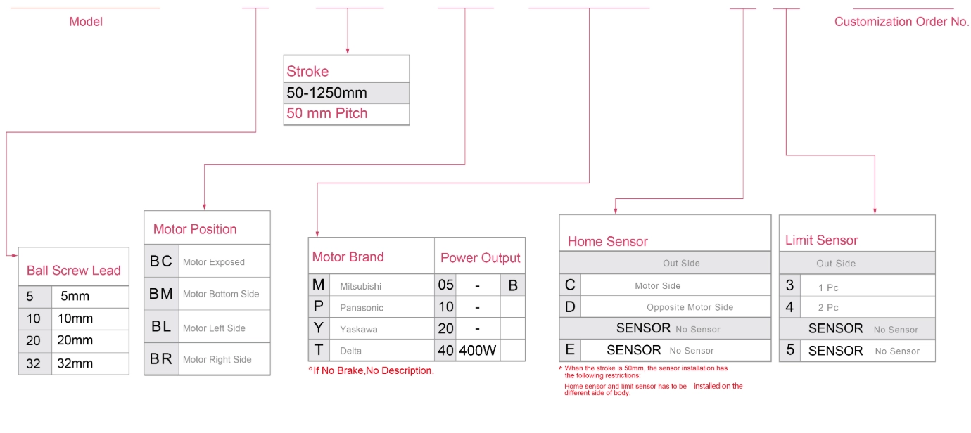 | 滾珠螺桿導程(毫米) | 5 | 10 | 20 | 32 | ||