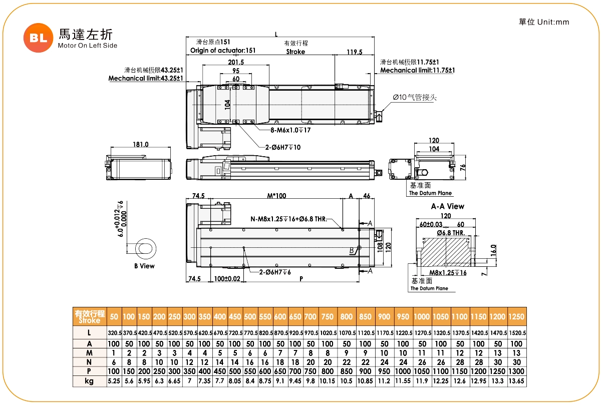 | 規格 | 重複性(毫米) | ±0.01 | ||||