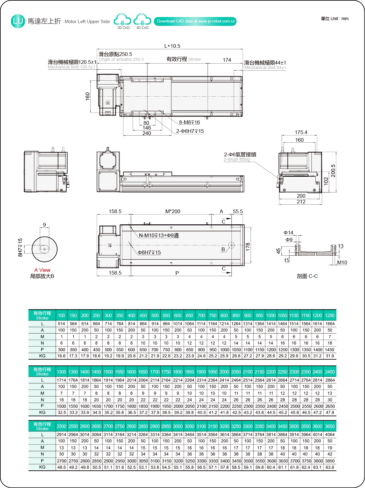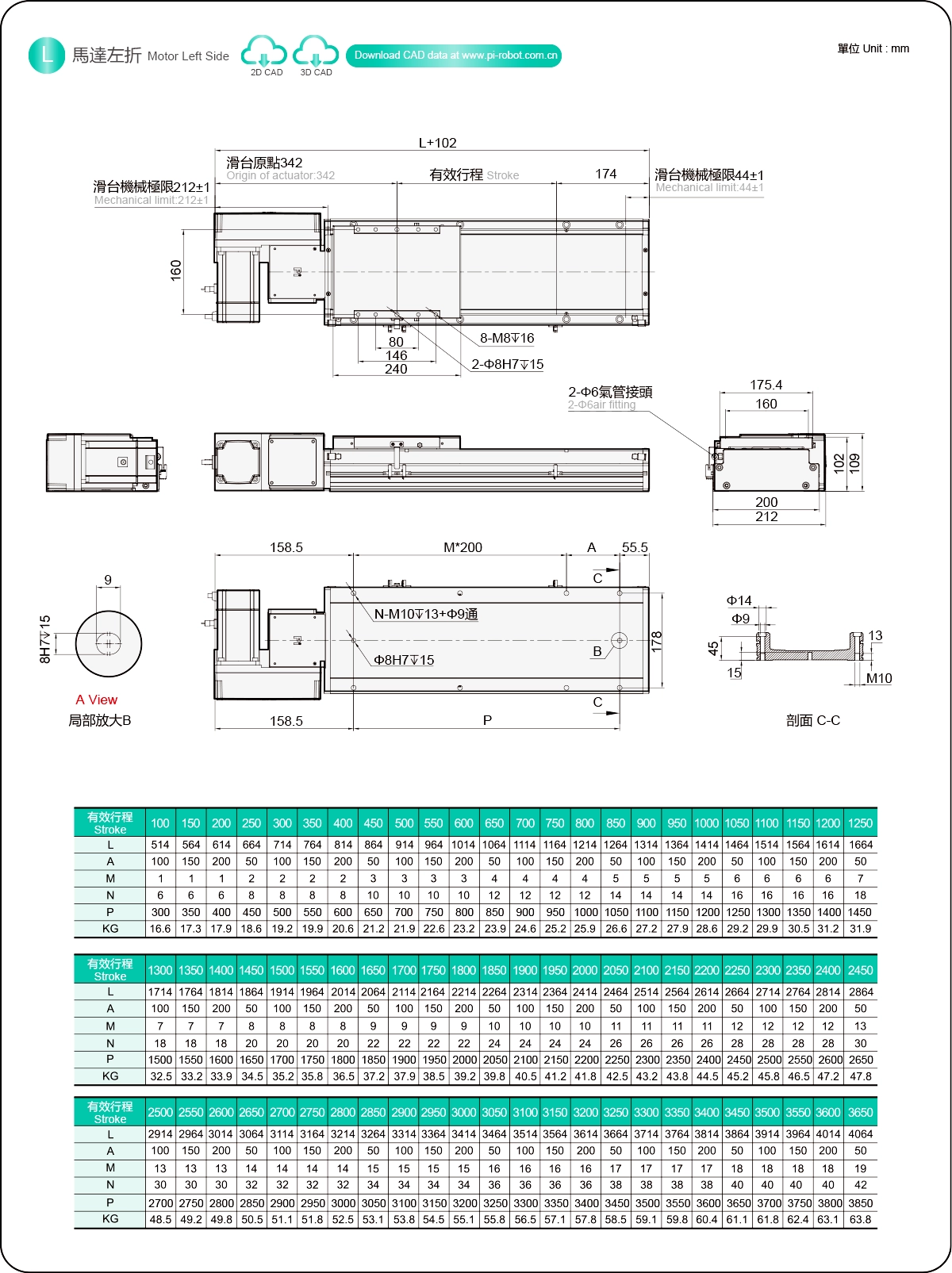 | 高剛性直線導軌(毫米) | 滾珠螺桿執行器 | ||