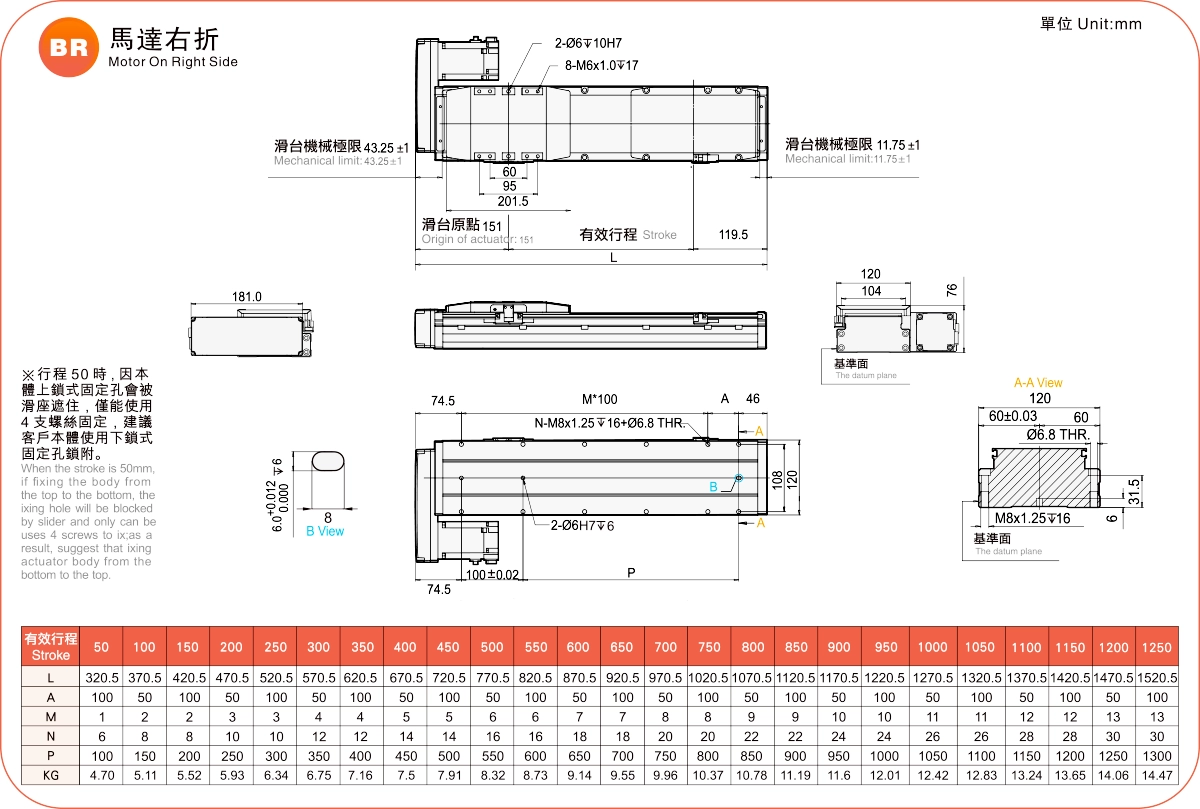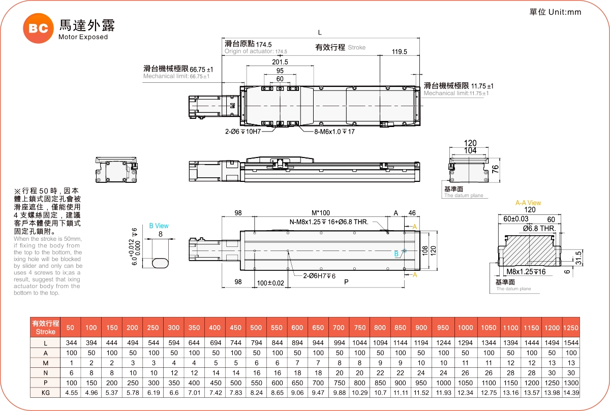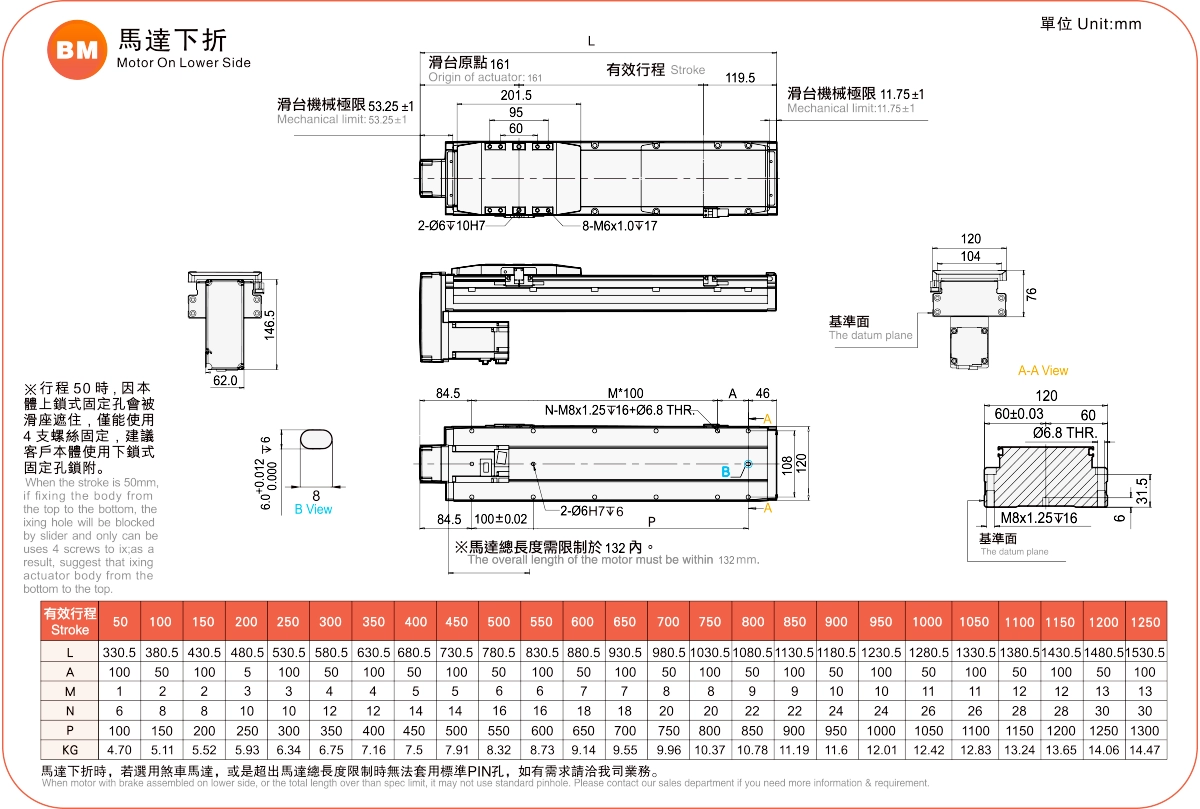 桿頭節距(毫米)※250-1250毫米/50毫米間距