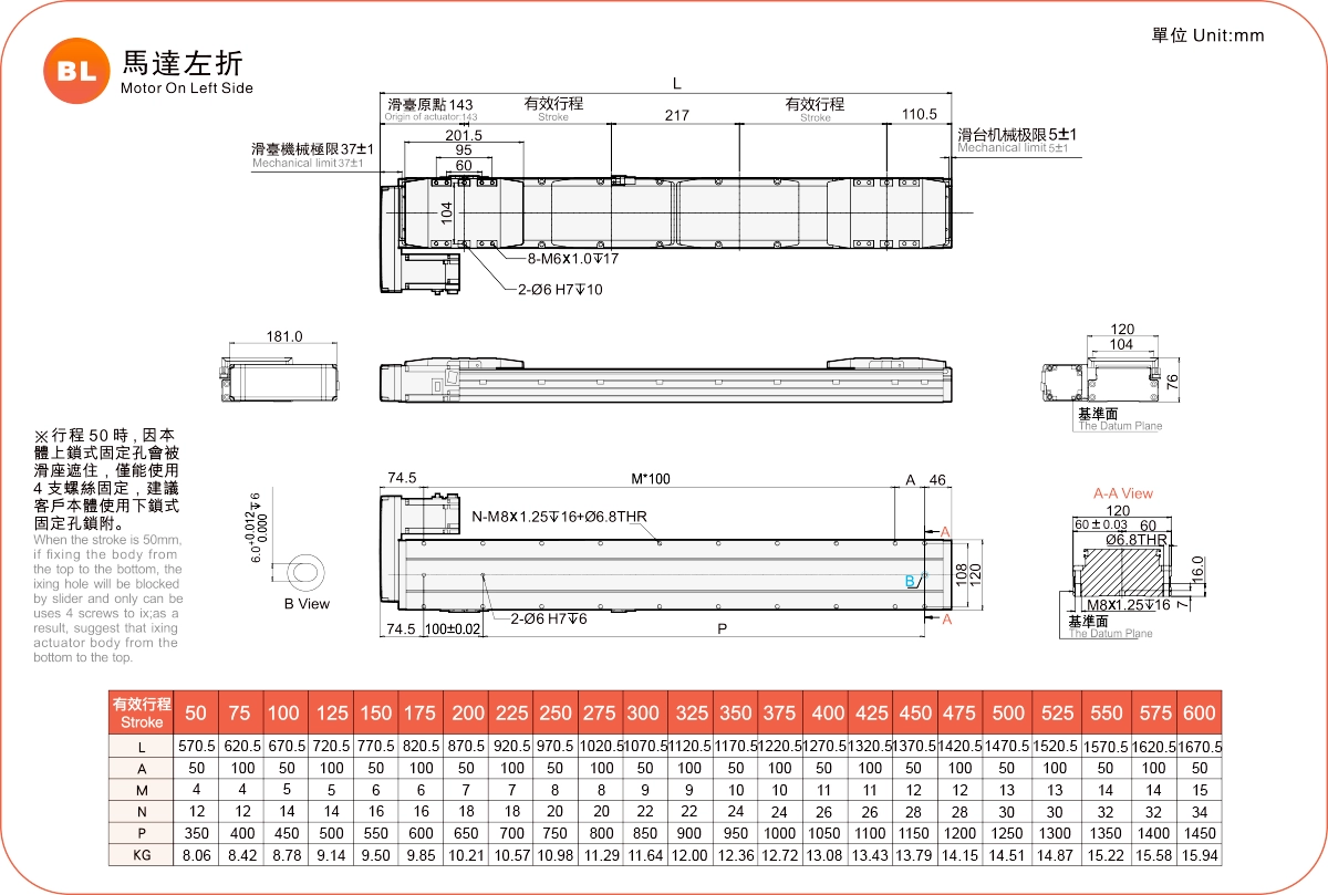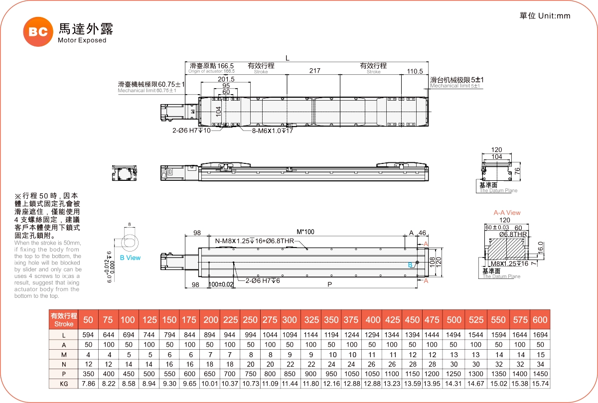 | 高剛性直線導軌(毫米) | 滾珠螺桿執行器 | ||||