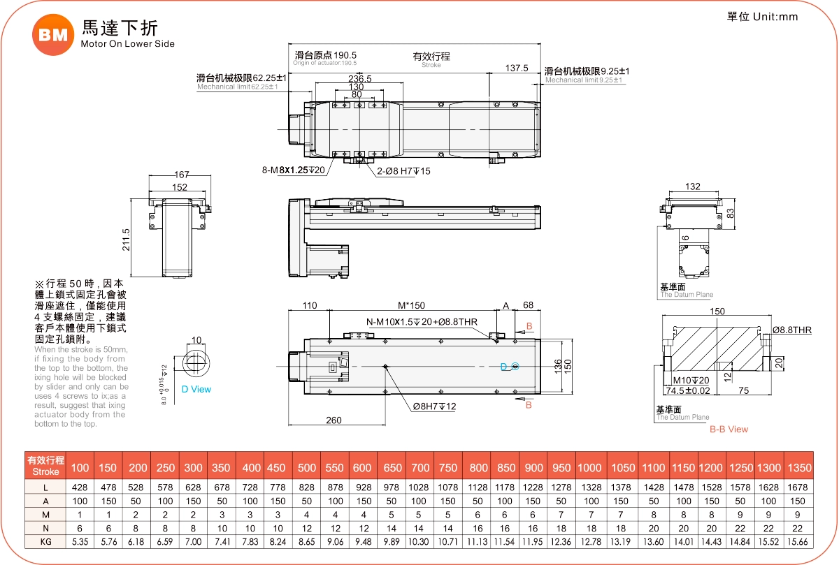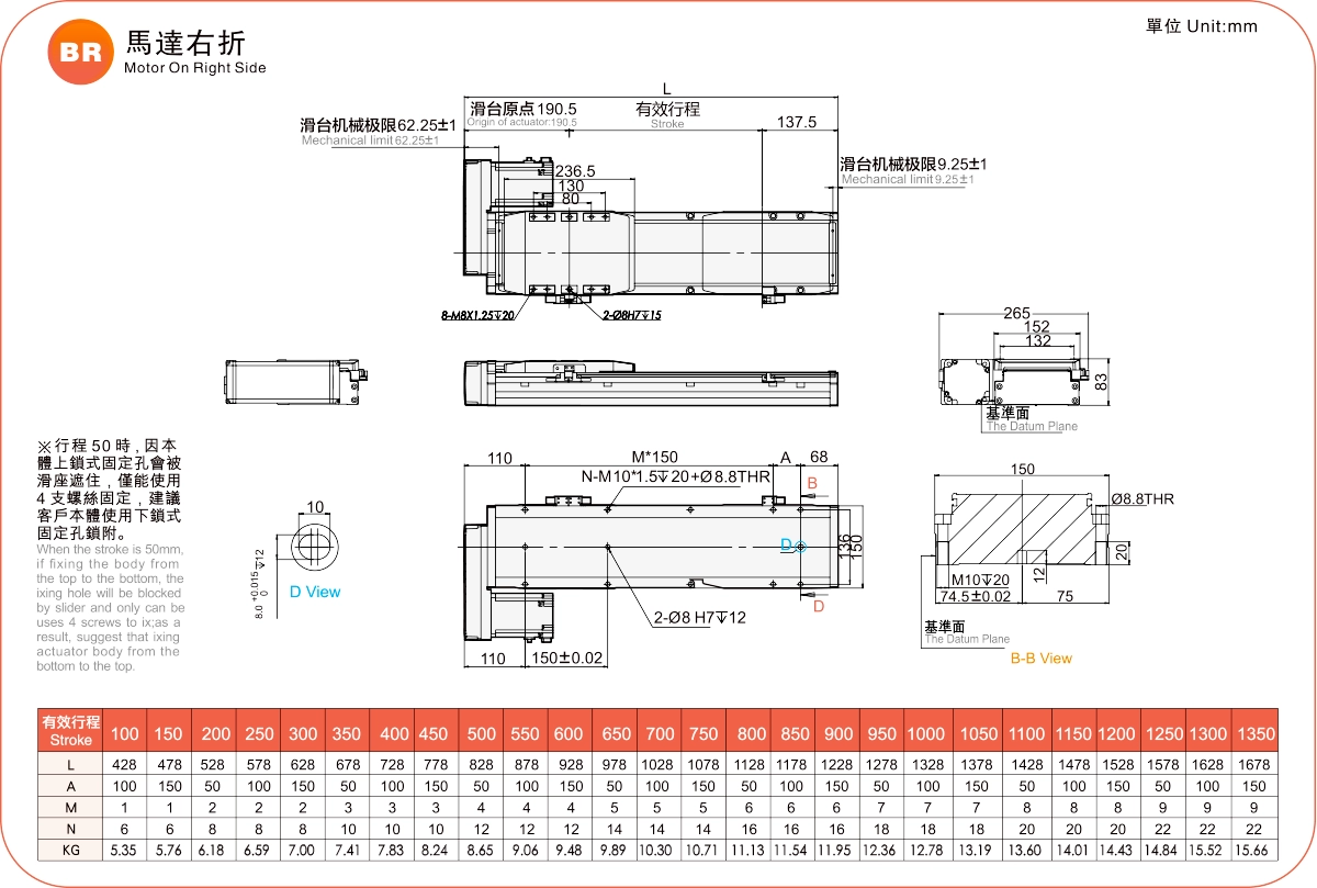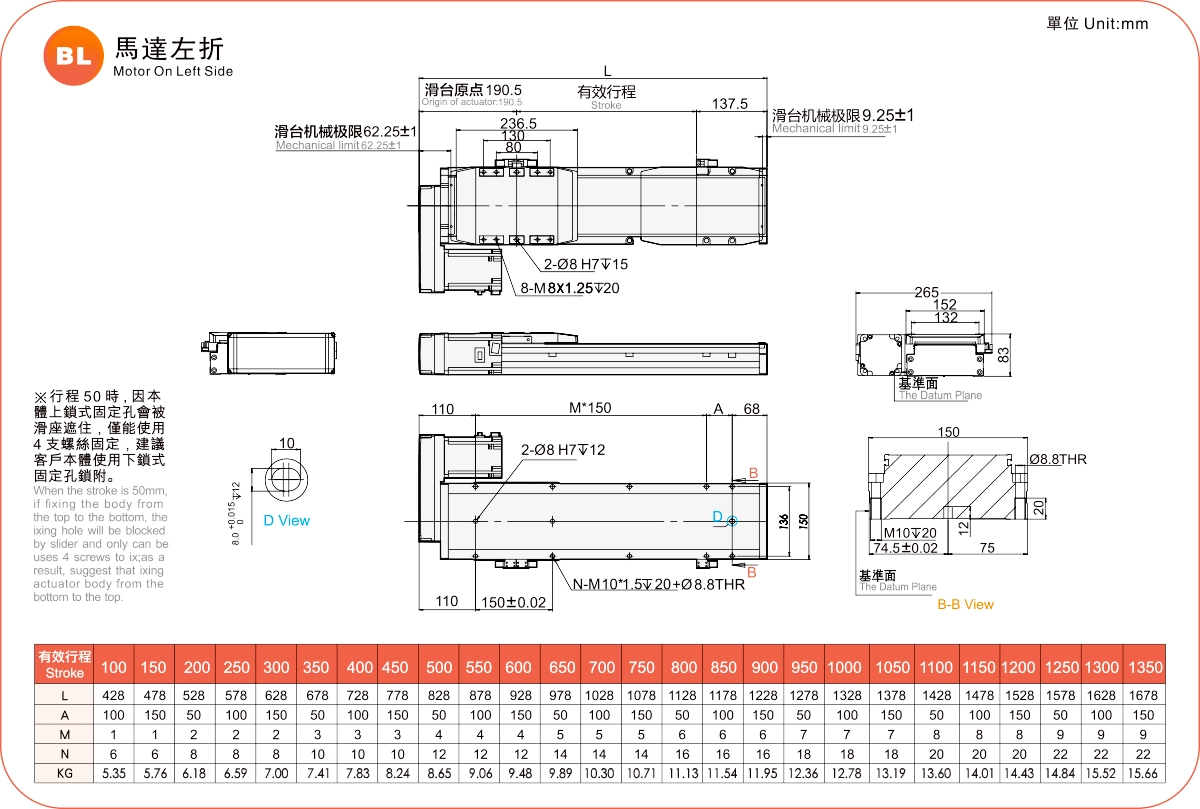行程範圍:100-1350毫米