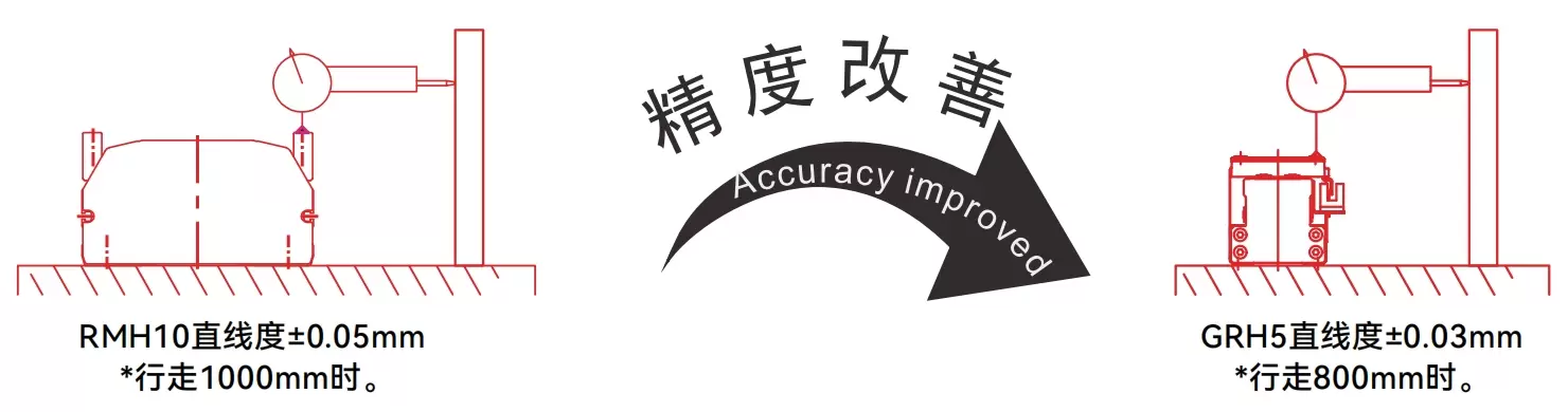| 標準 | 滾珠螺桿 | GRH 5M | 100瓦 | 54 | ±0.01 | 12 | 2 | 30 | 10 | 100 |