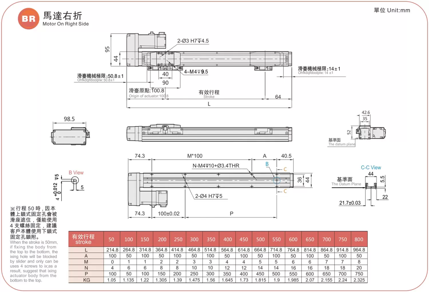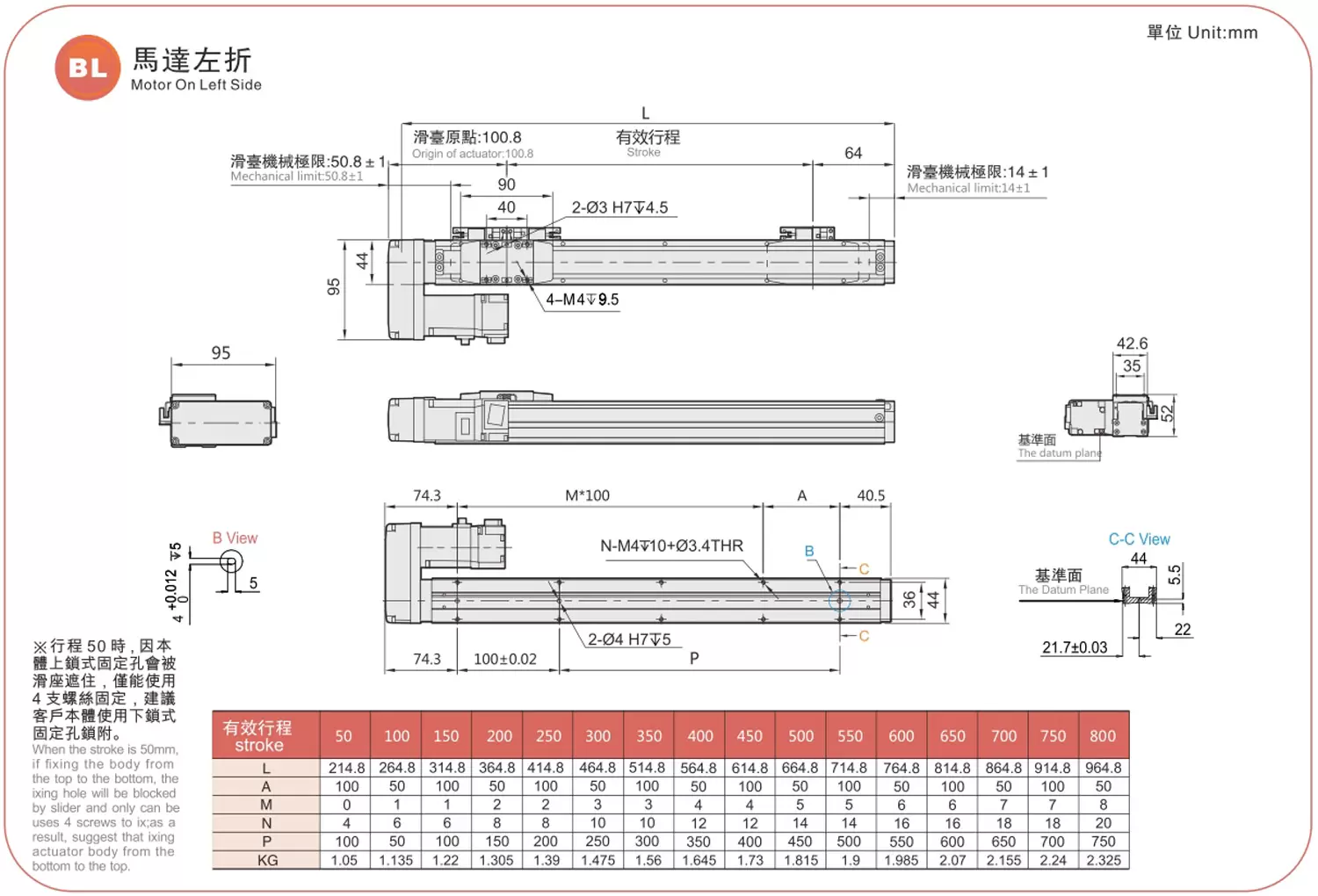 | 槳距(毫米) | 50-800毫米/50毫米間距 | ||||
