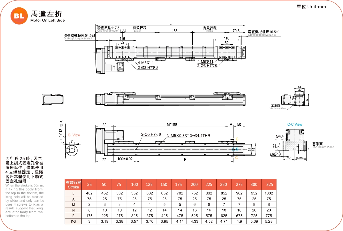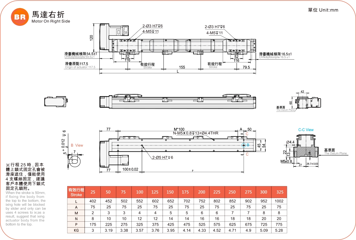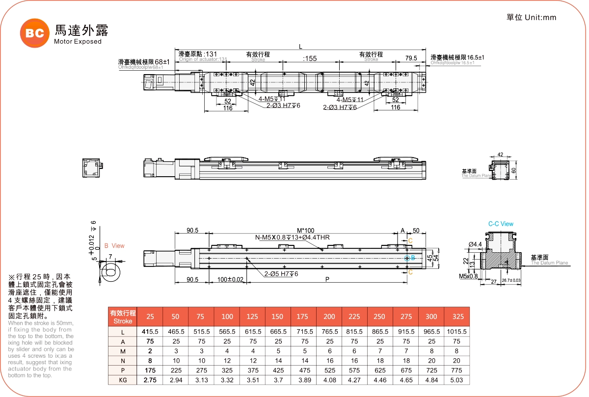 | 高剛性直線導軌(毫米) | 滾珠螺桿執行器 | ||||