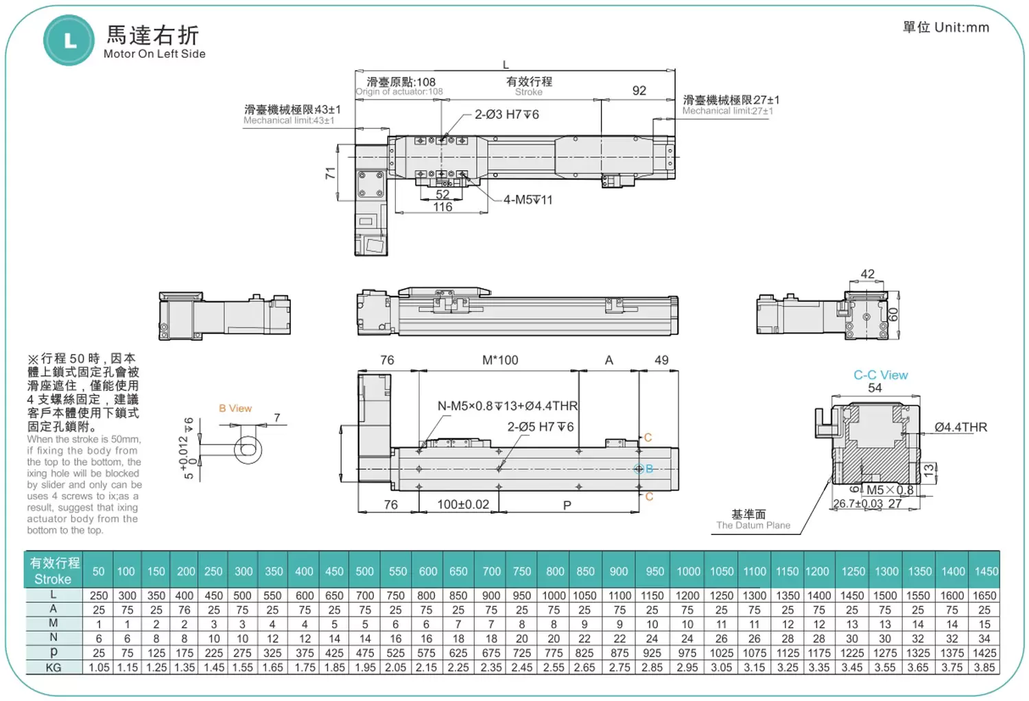 | 槳距(毫米) | 50-1450毫米/50毫米間距 | ||