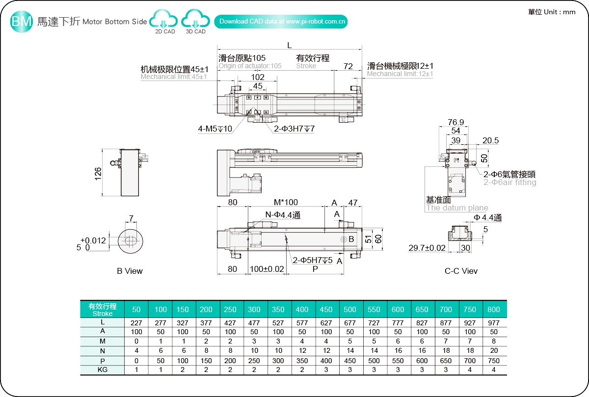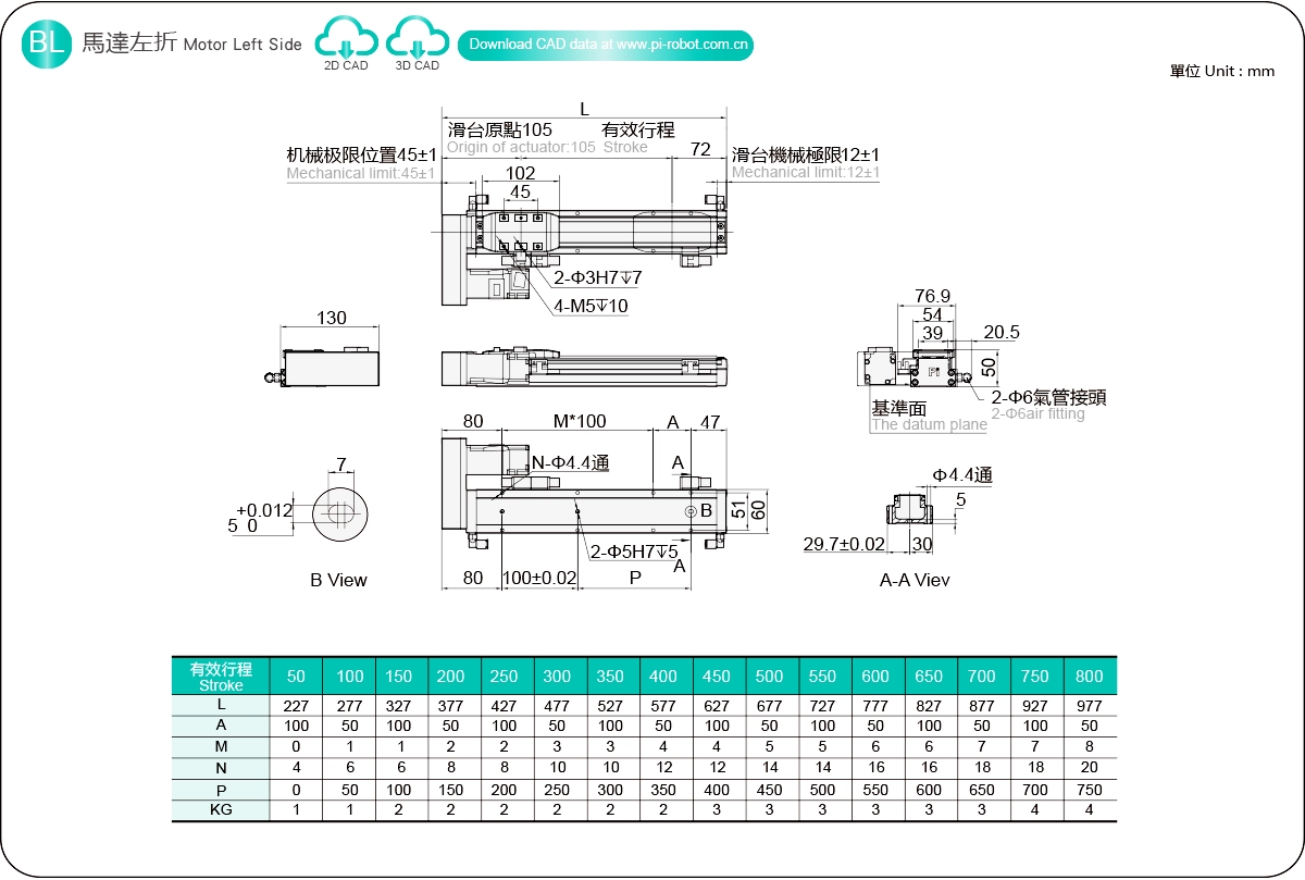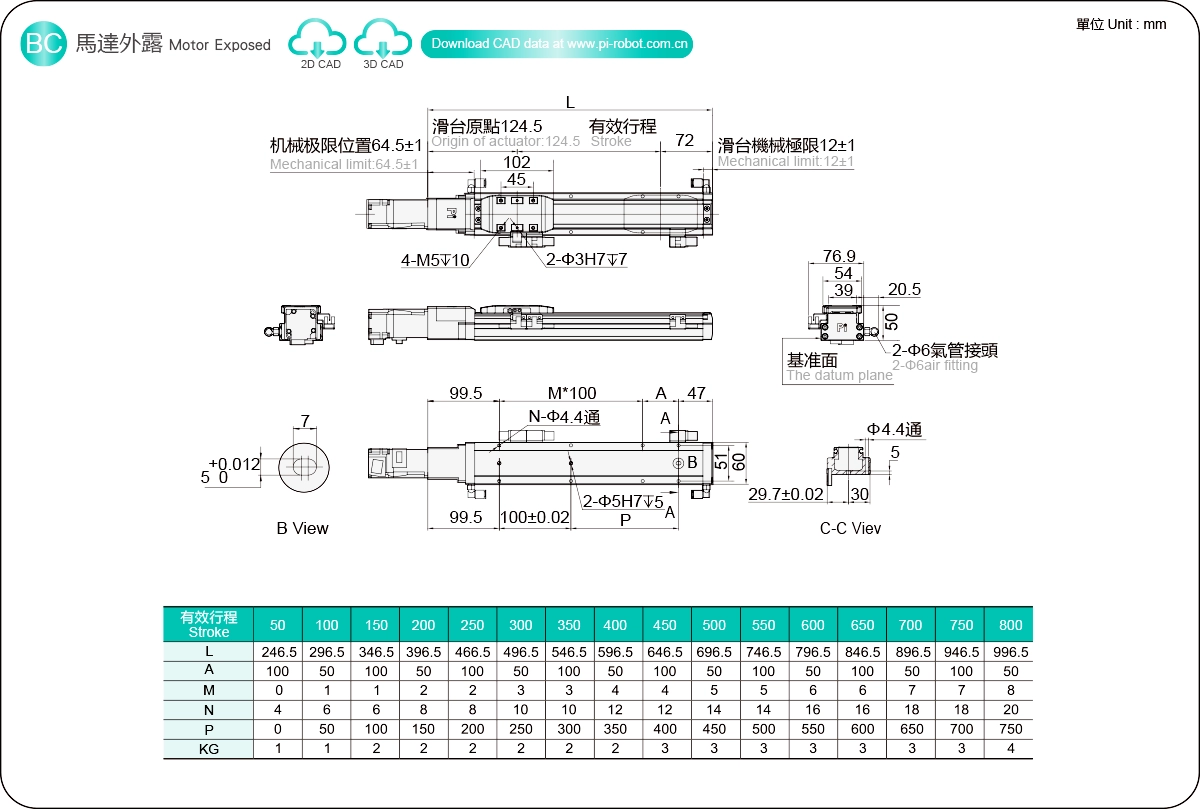 行程範圍:50-800毫米