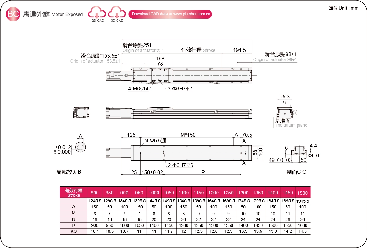 | 高剛性直線導軌(毫米) | 滾珠螺桿執行器 | |||||