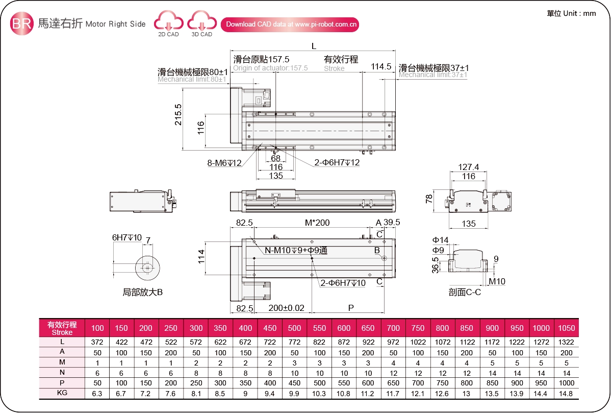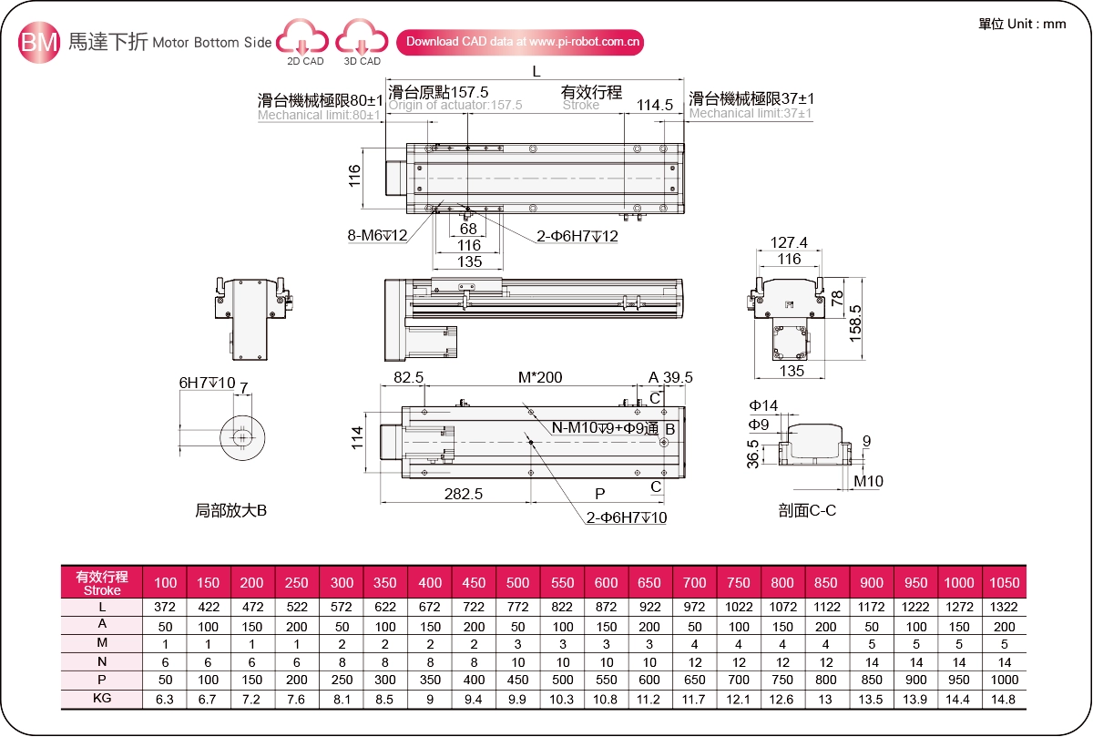 行程範圍:100-1050毫米