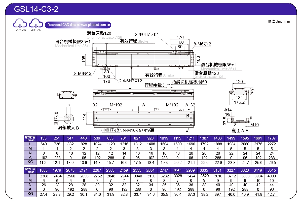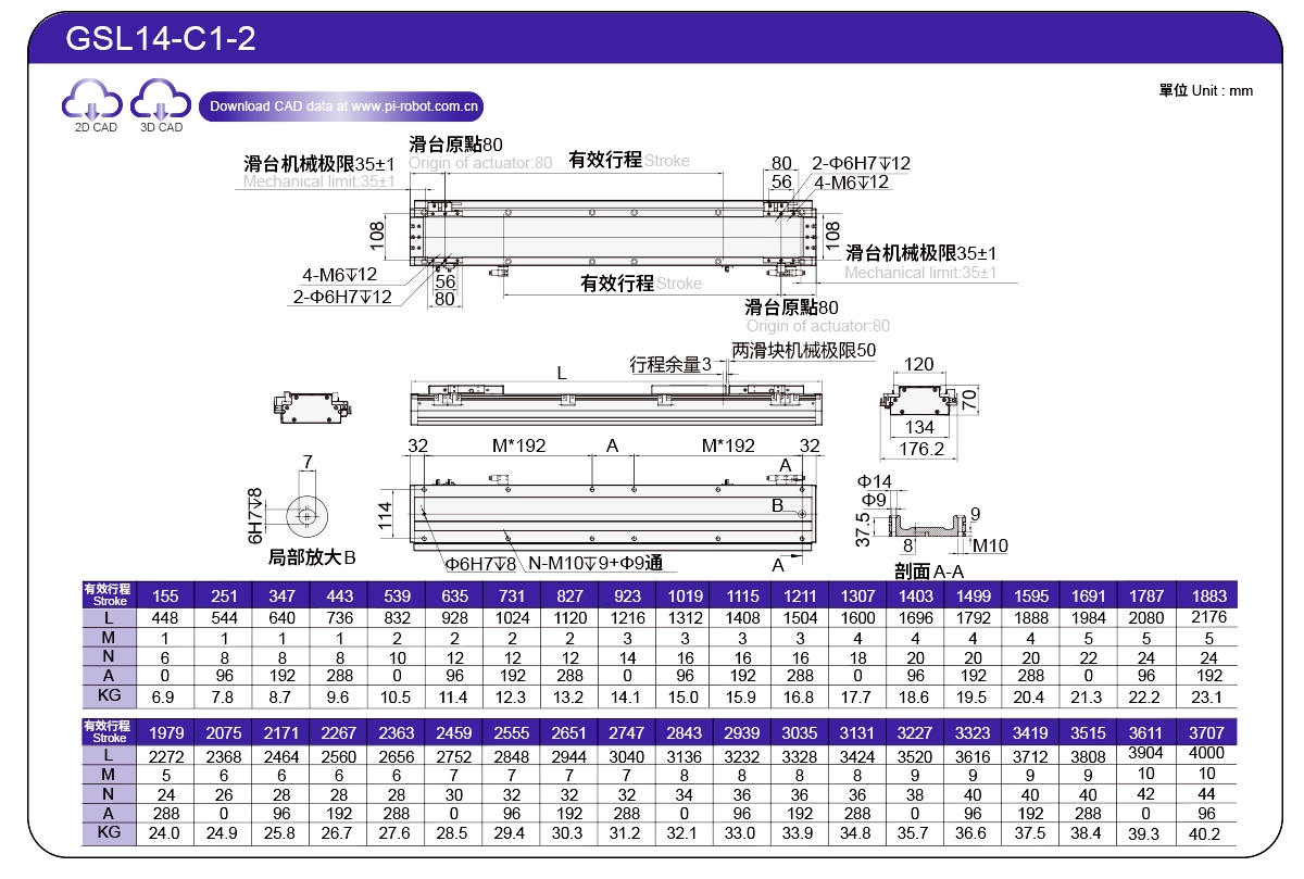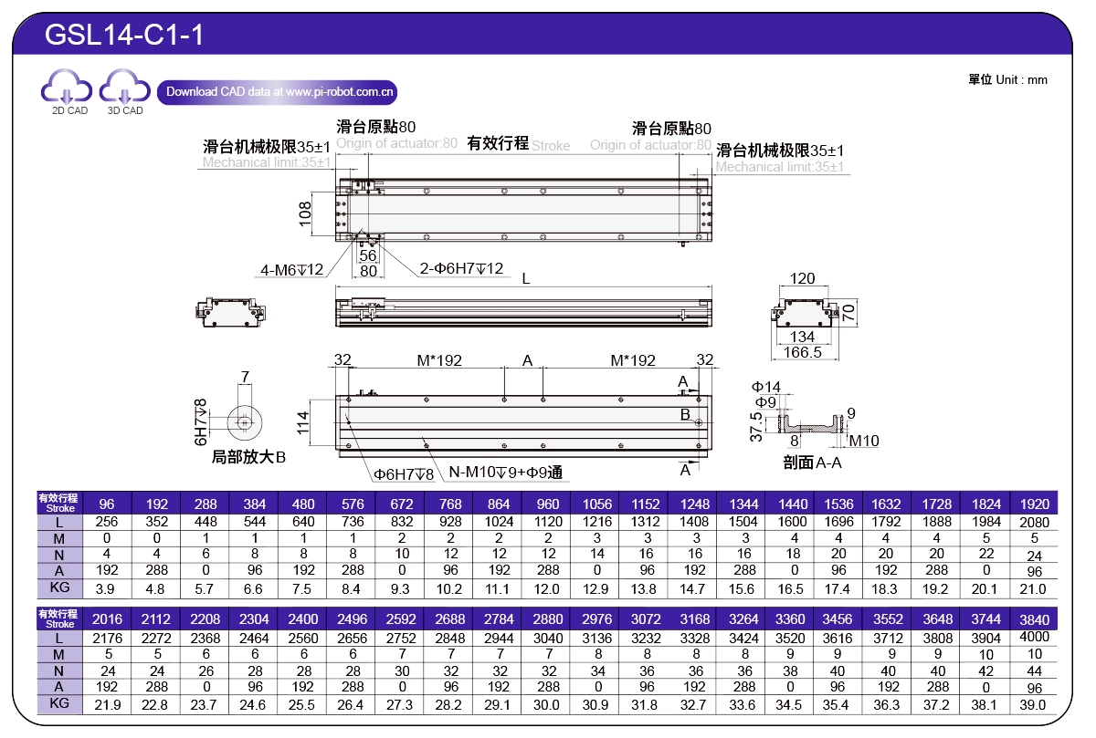 | 標準 | 線性馬達機器人 | GSL7 | P27-C1 | 75 | 65 | ±0.003 | 26 | 57 | 3.3 | 6 | 2500 |