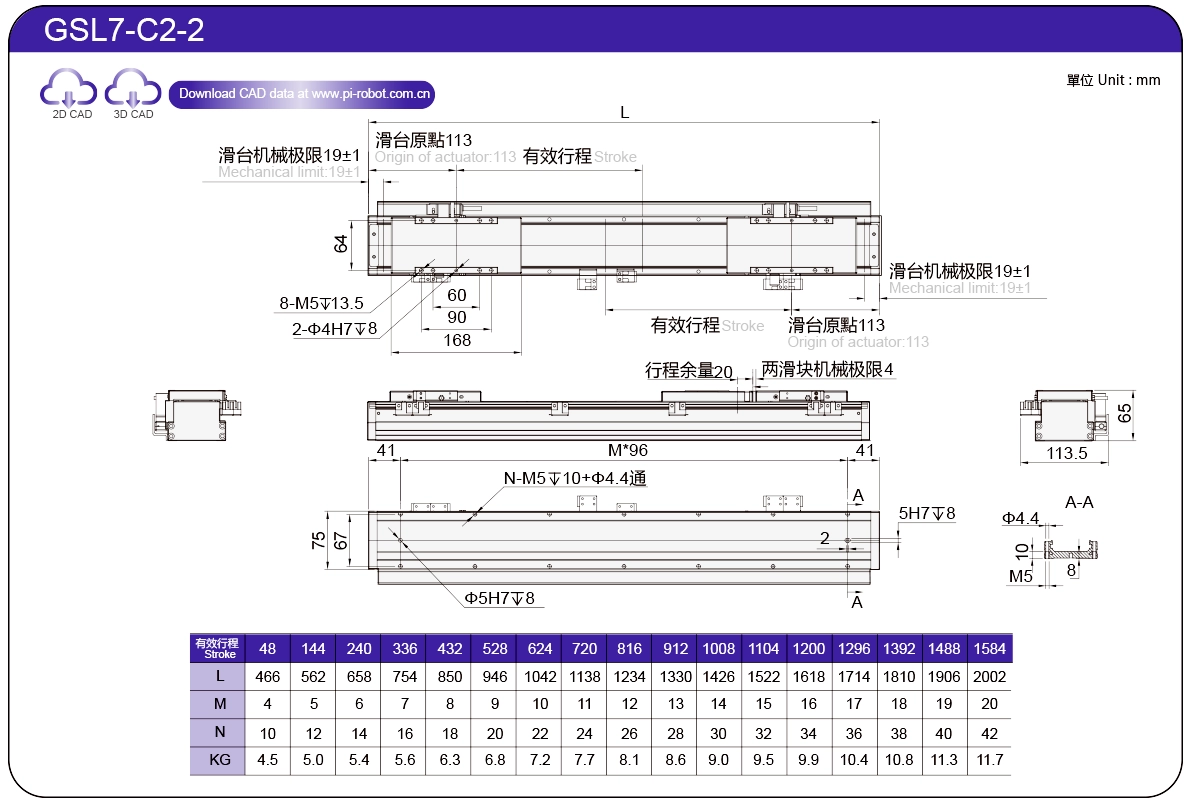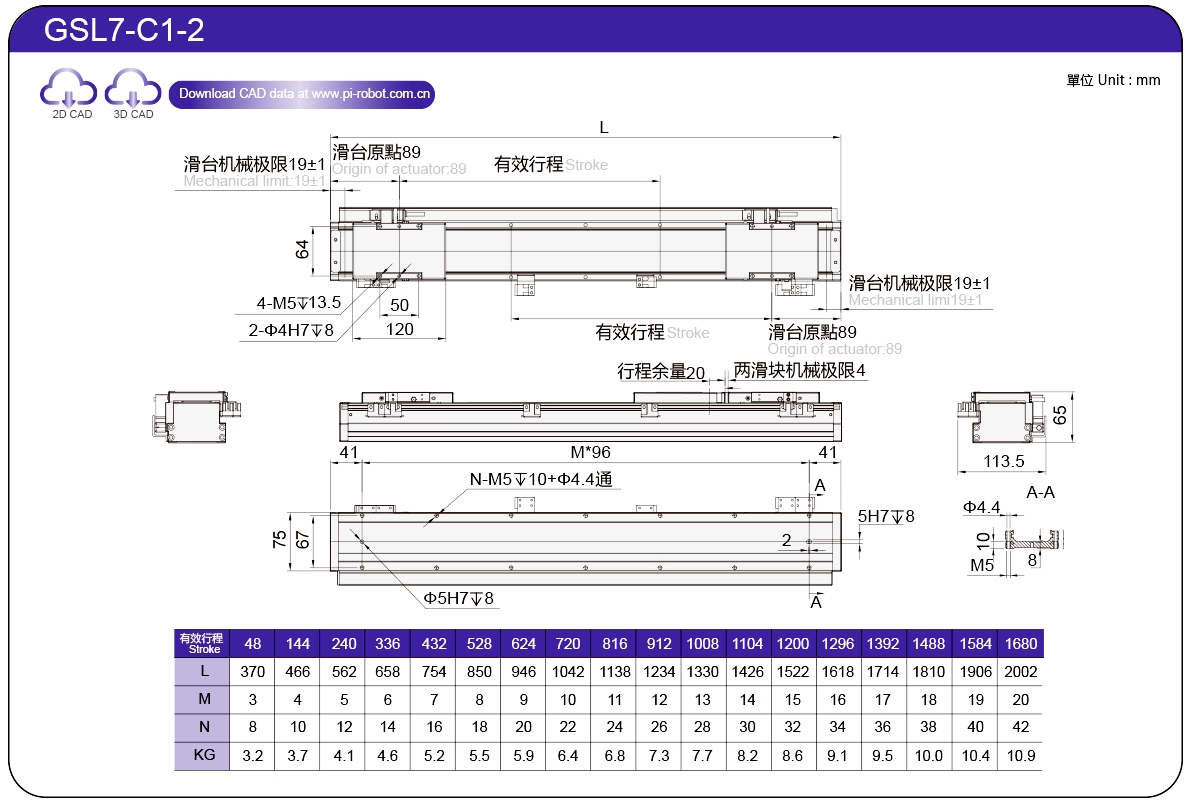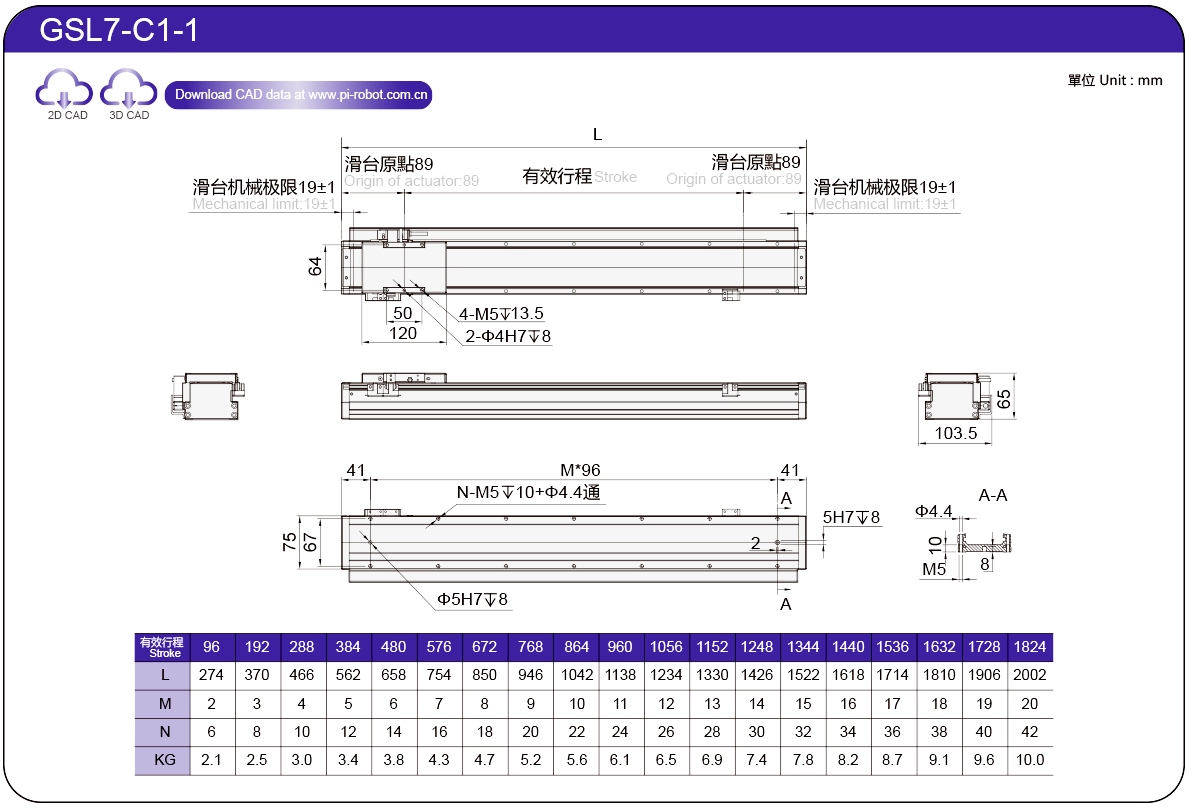 標準線性馬達機器人GSL7P27-C17565±0.00326573.362500