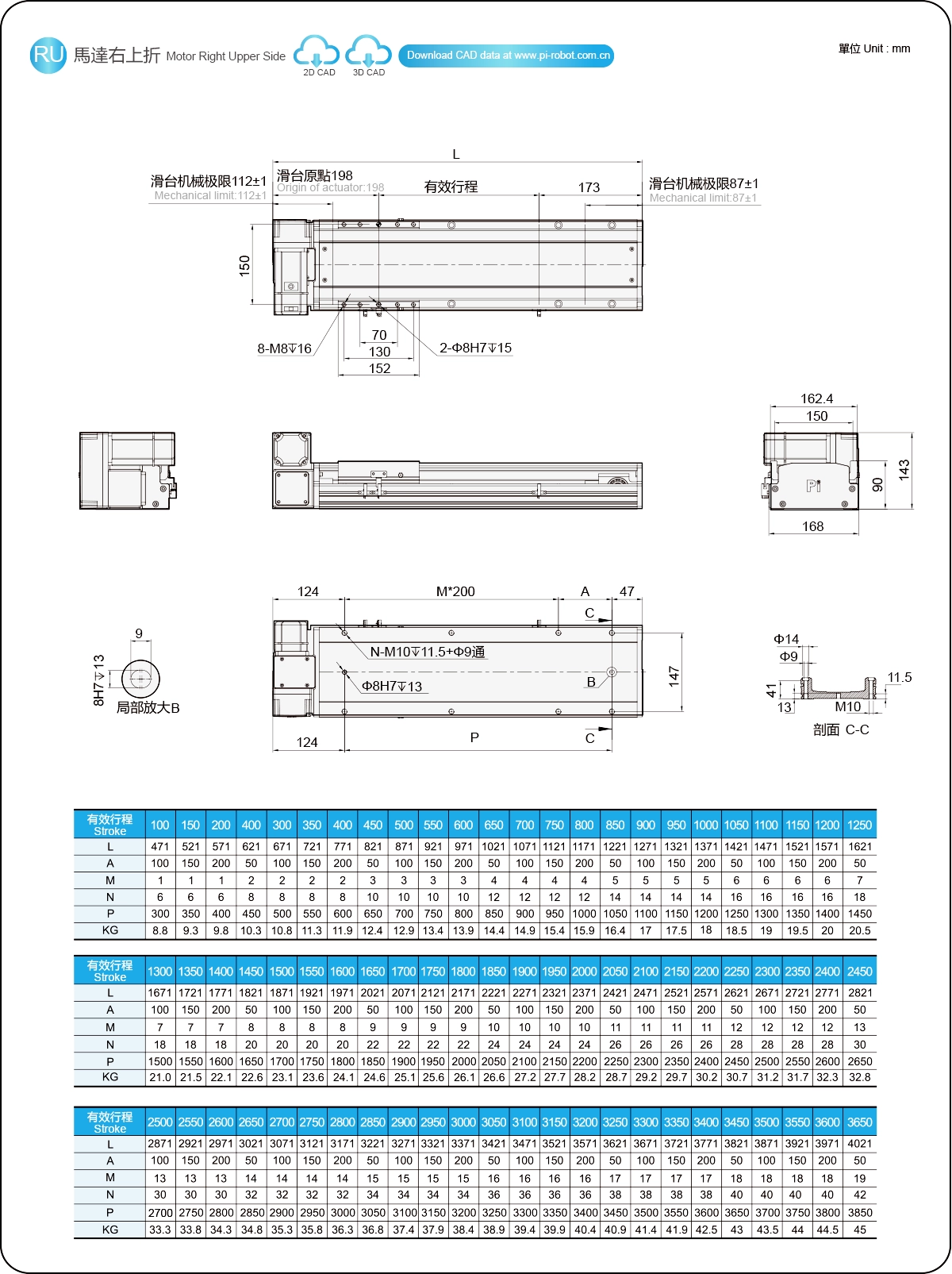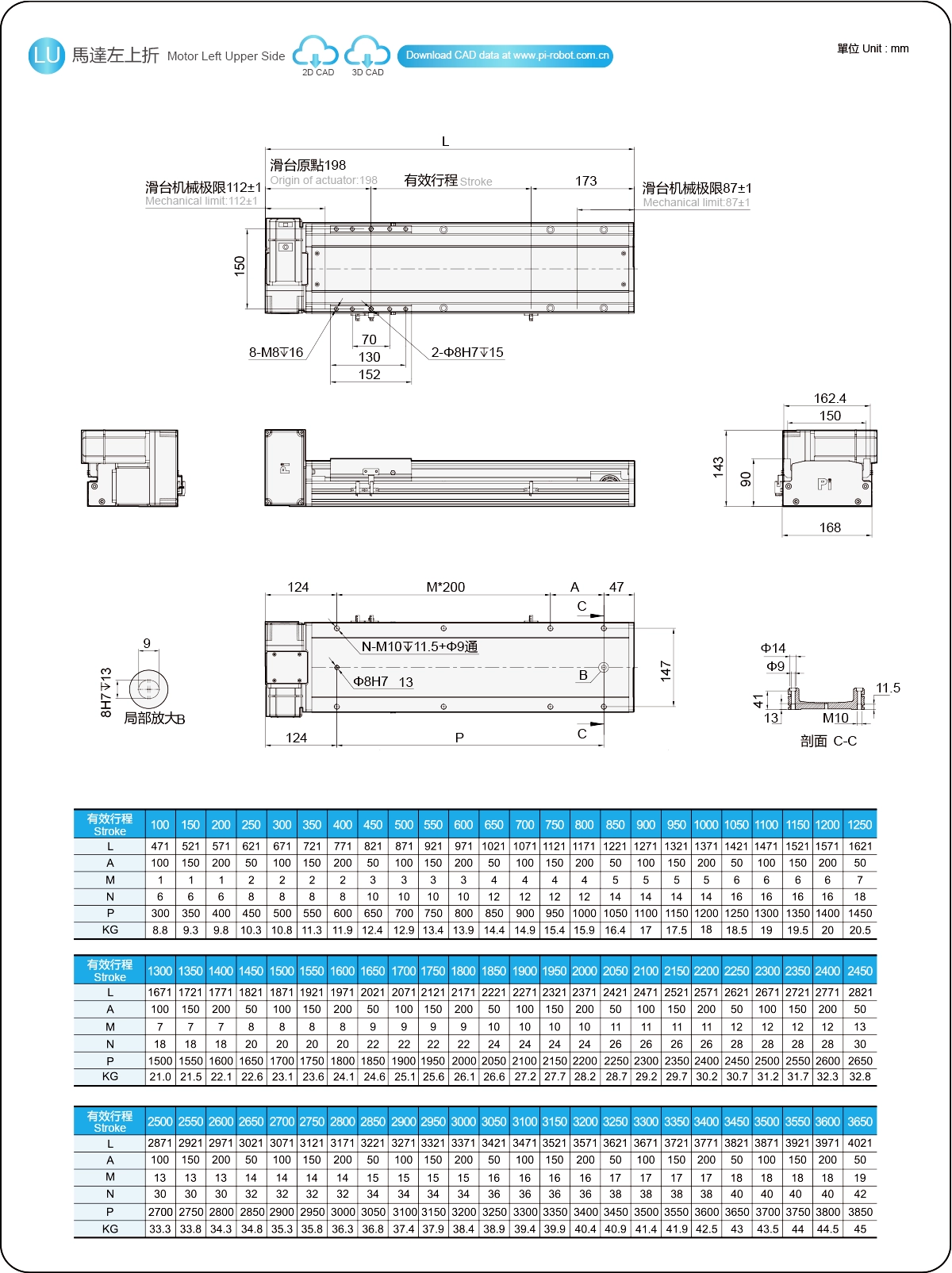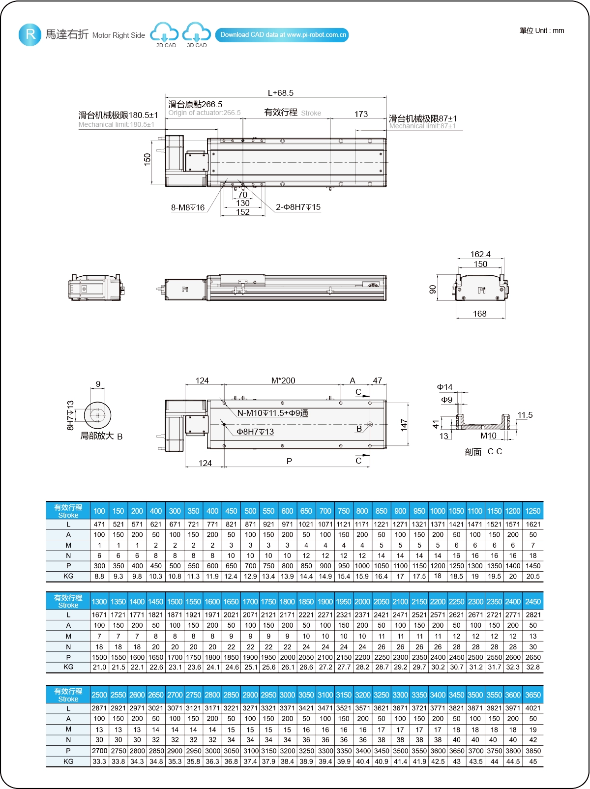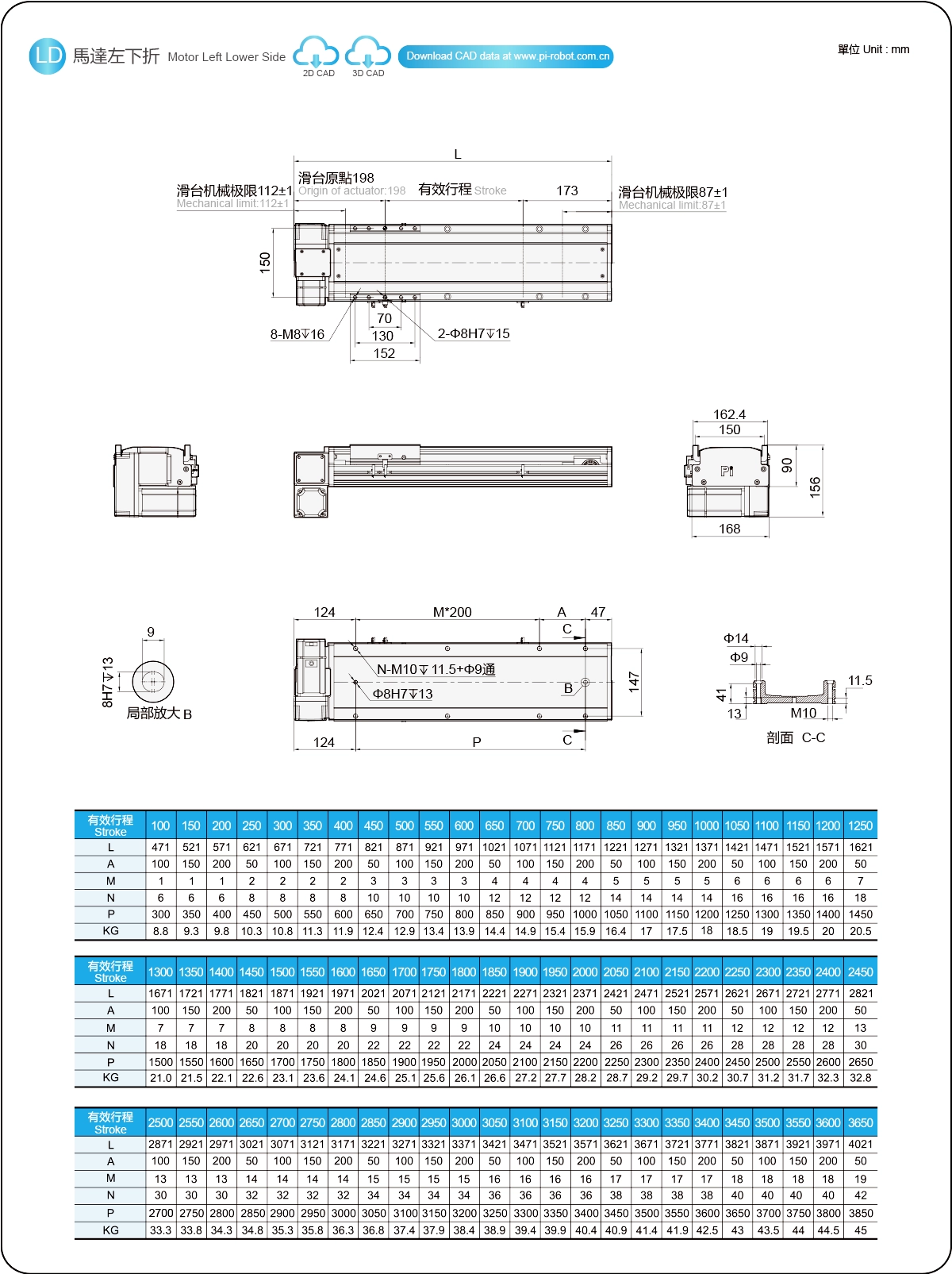 | 高剛性直線導軌(毫米) | 滾珠螺桿執行器 | ||