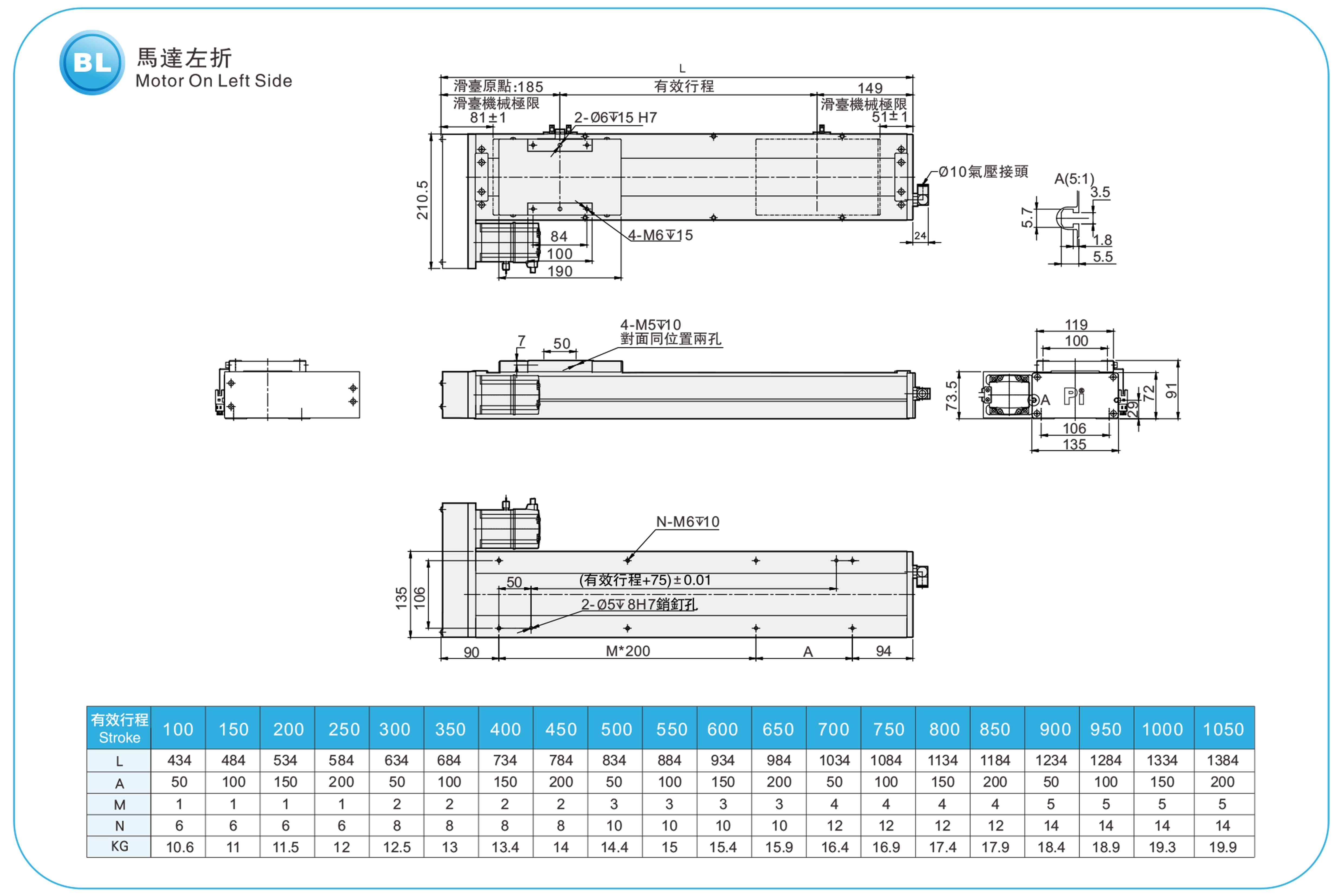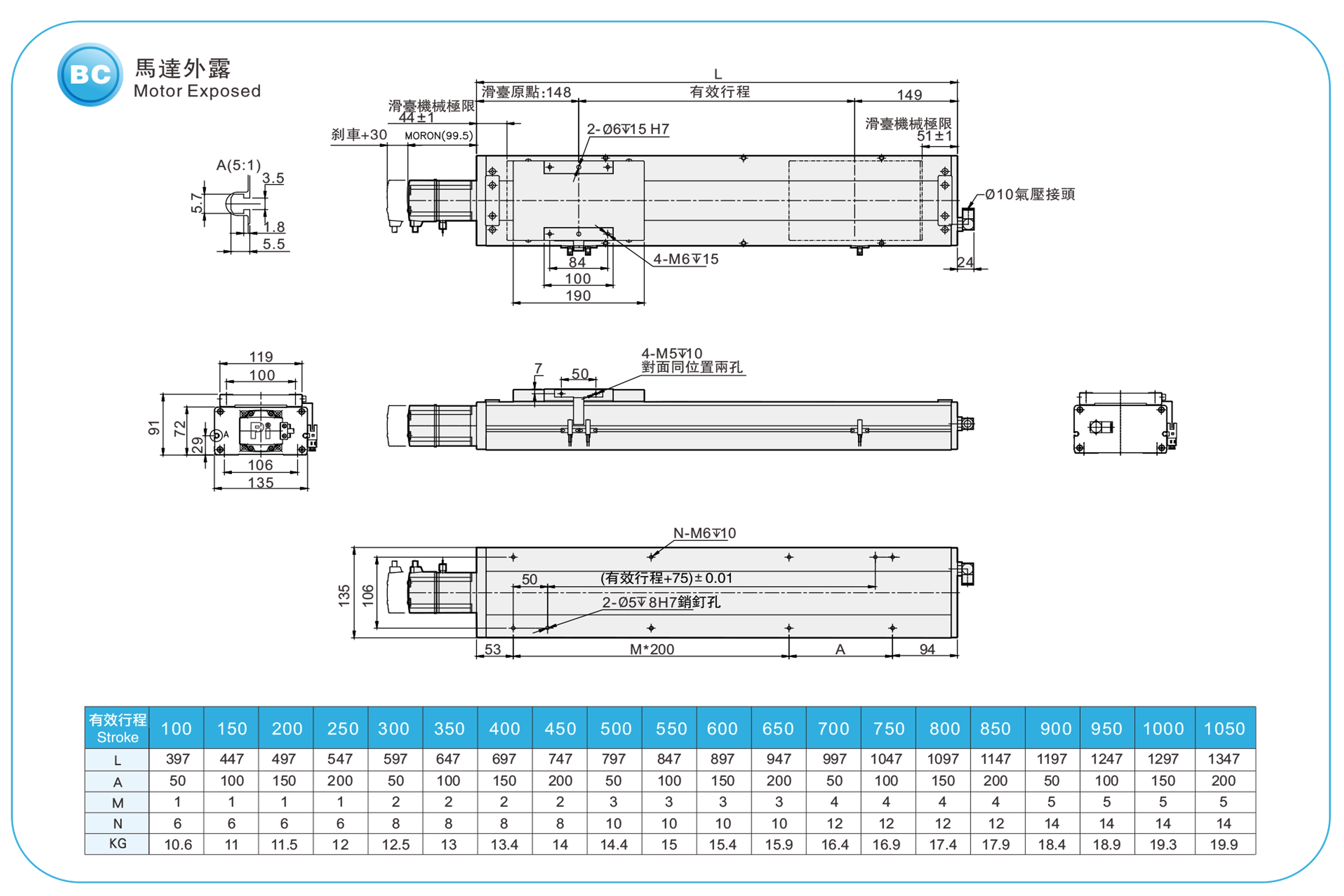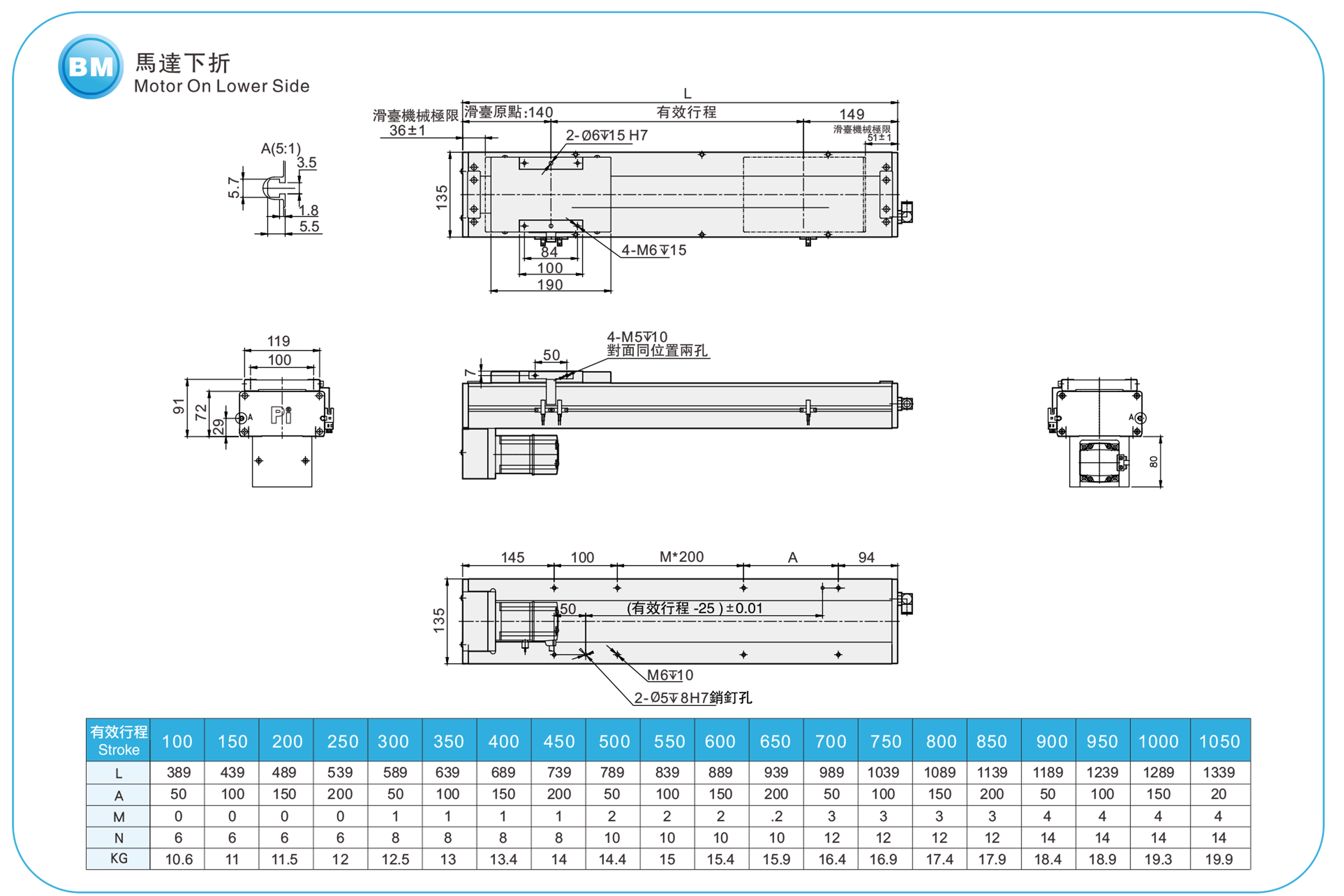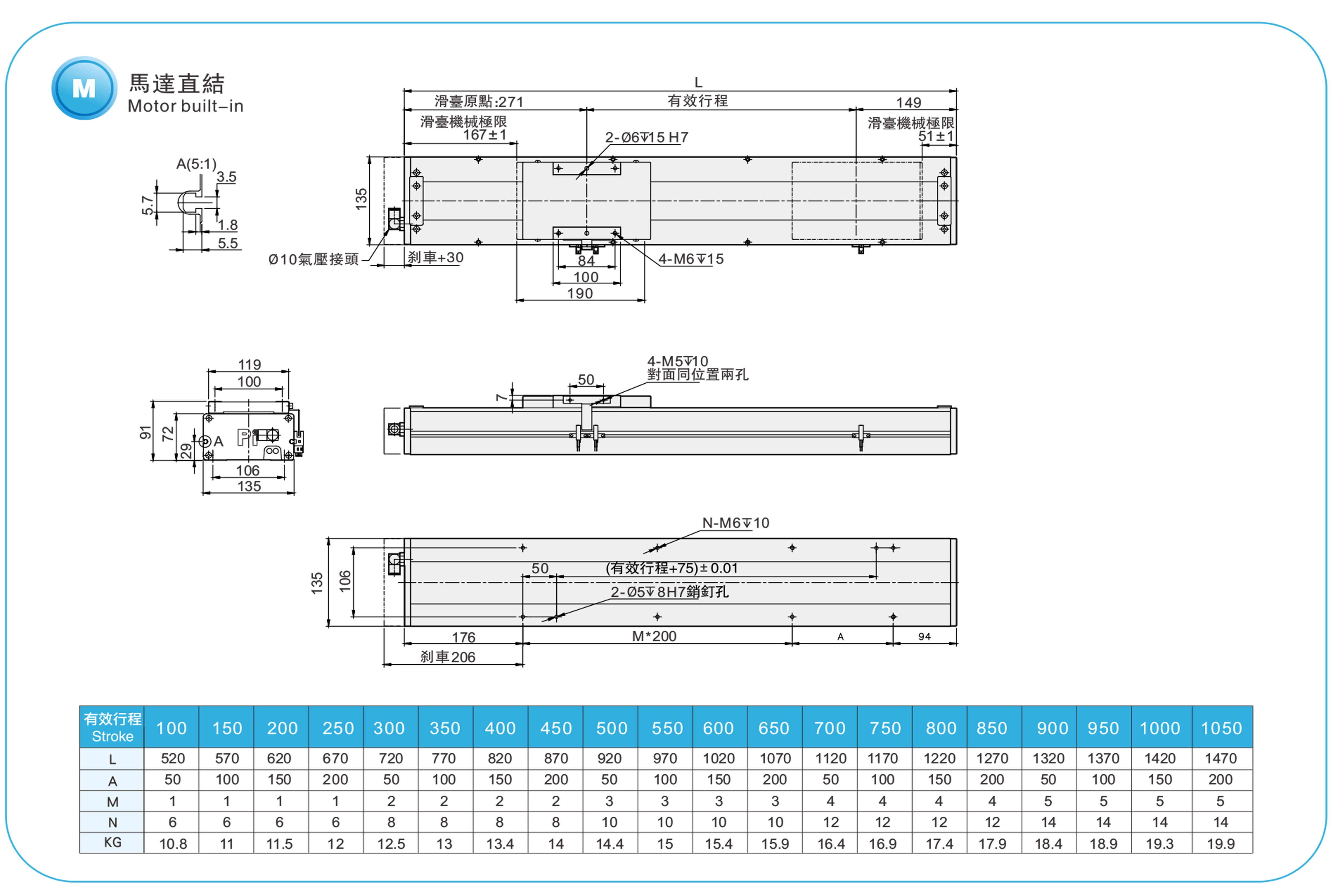 衝程螺距:100-1050毫米