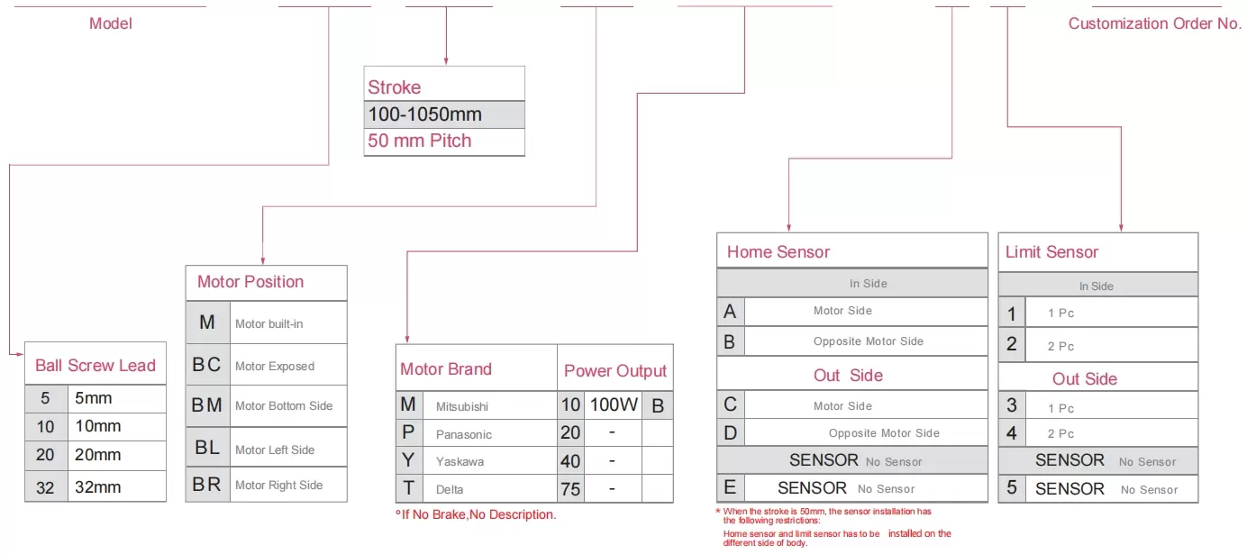 | 滾珠螺桿導程(毫米) | 5 | 10 | 20 | 40 | ||