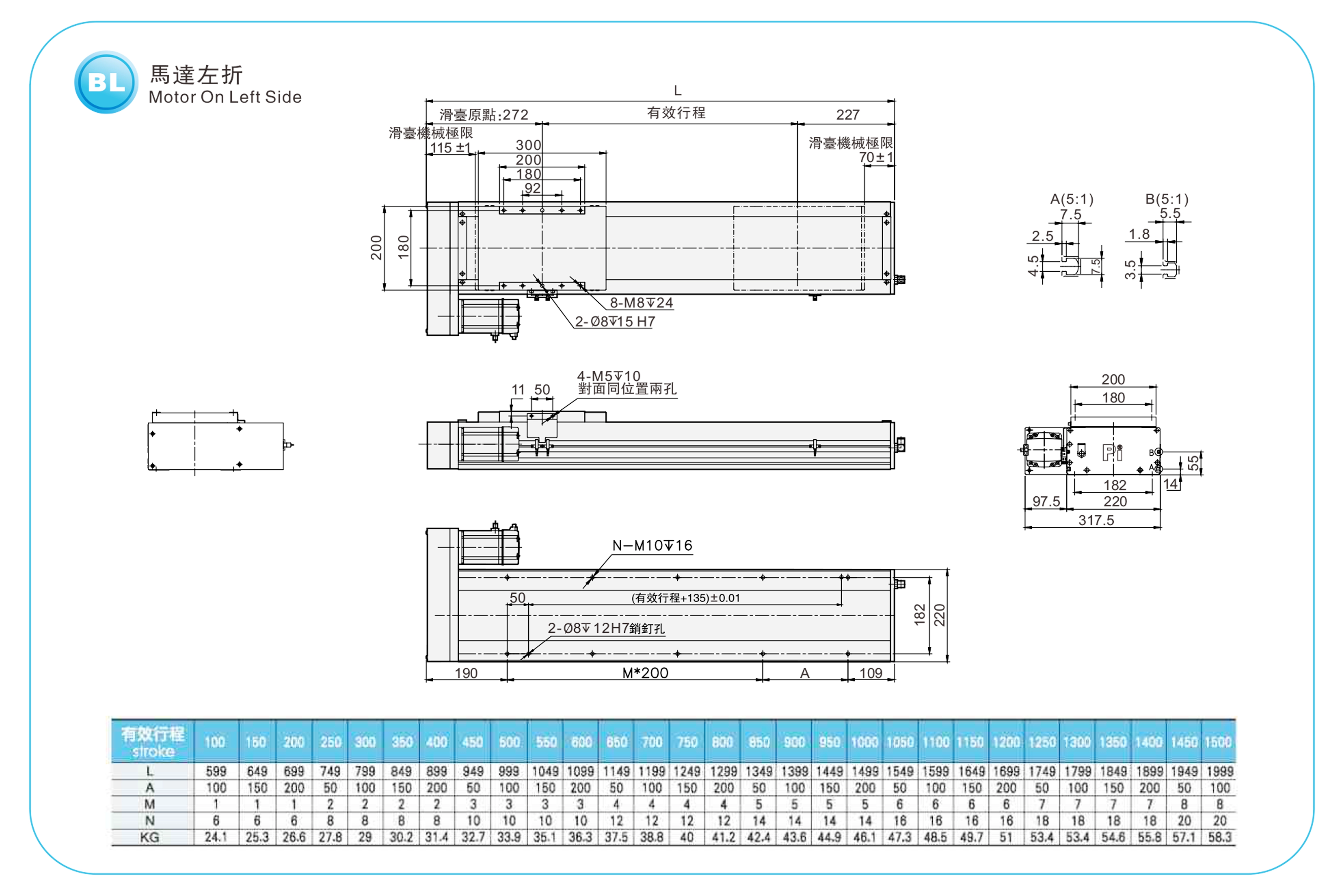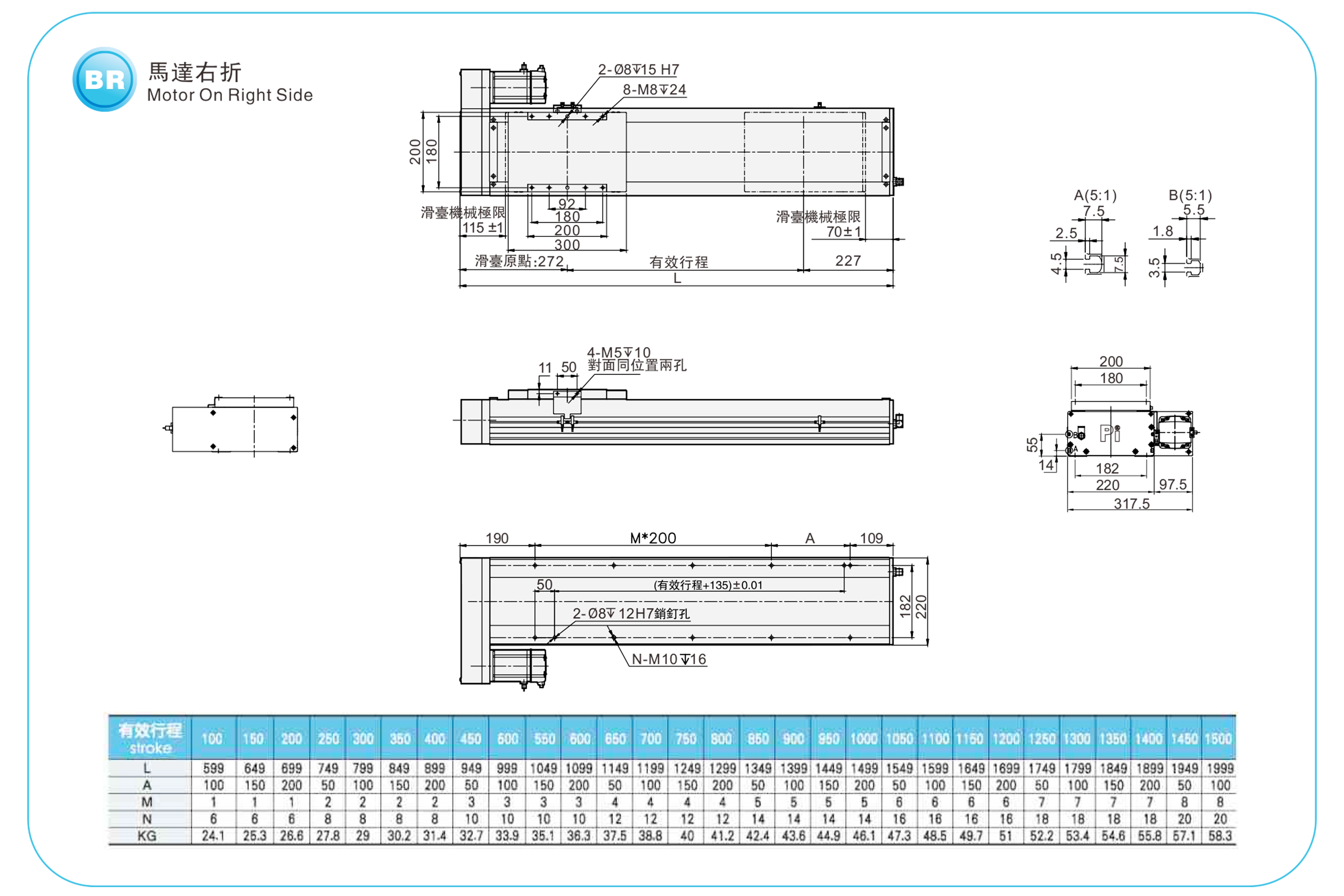 | 滾珠螺桿導程(毫米) | 5 | 10 | 20 | 40 | ||