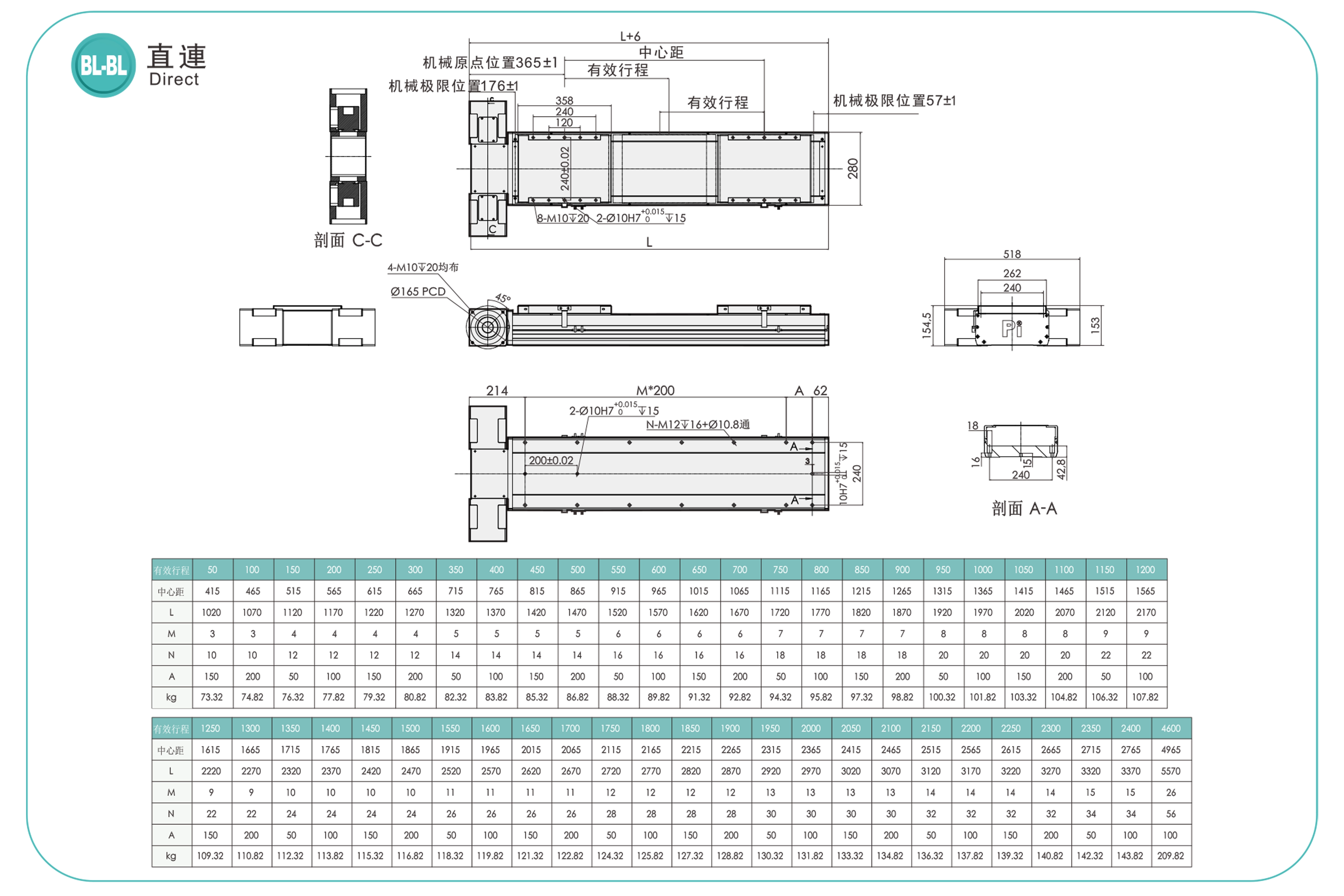 水平載重:200公斤