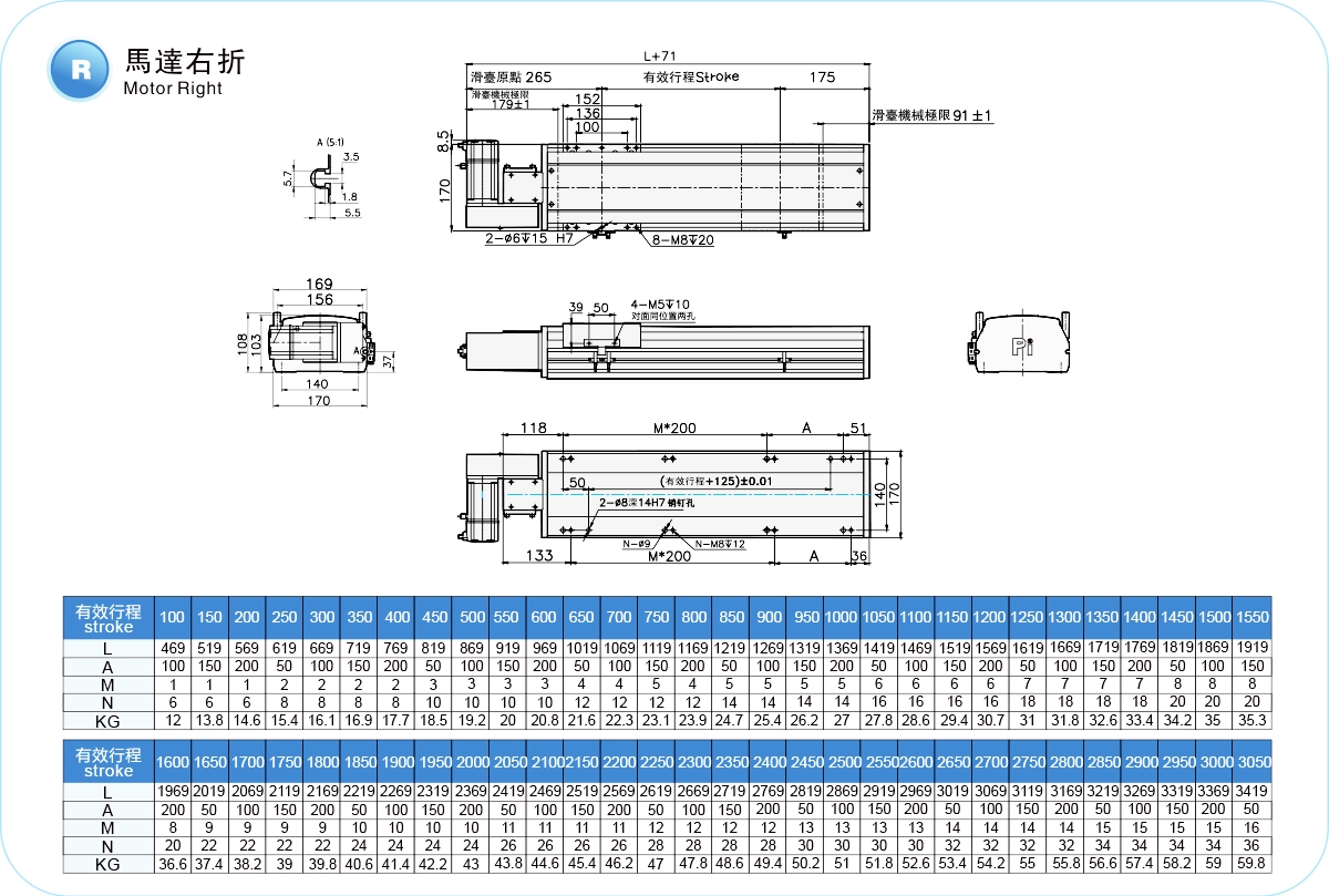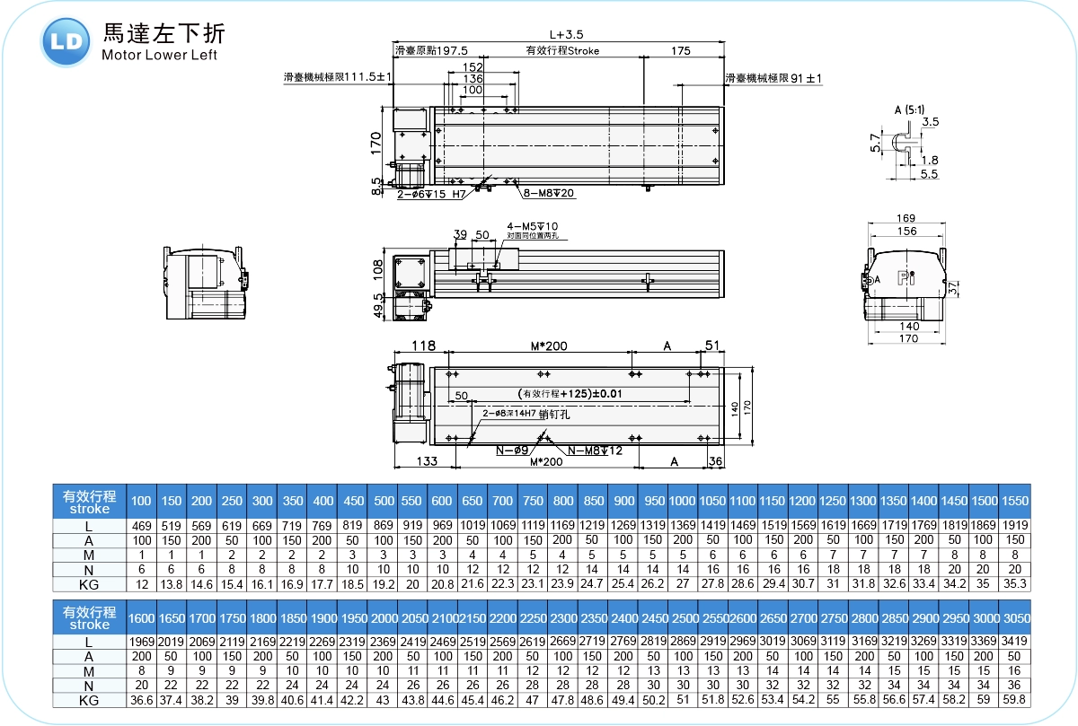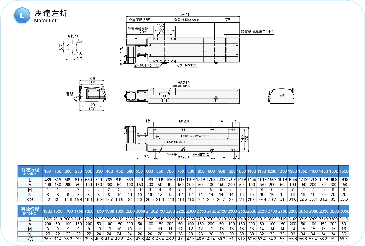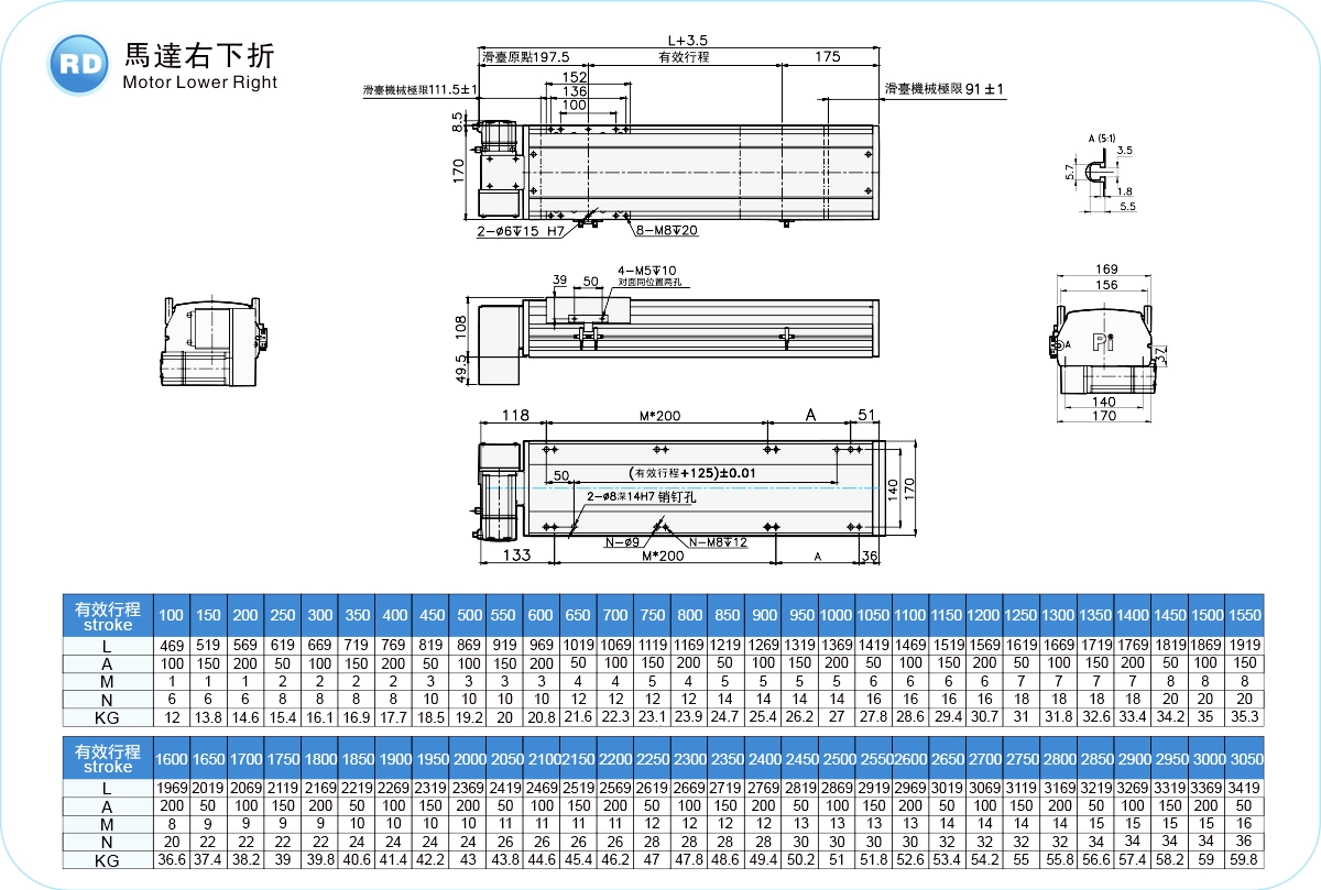 | 高剛性直線導軌(毫米) | 寬20厘米,高15厘米 | ||