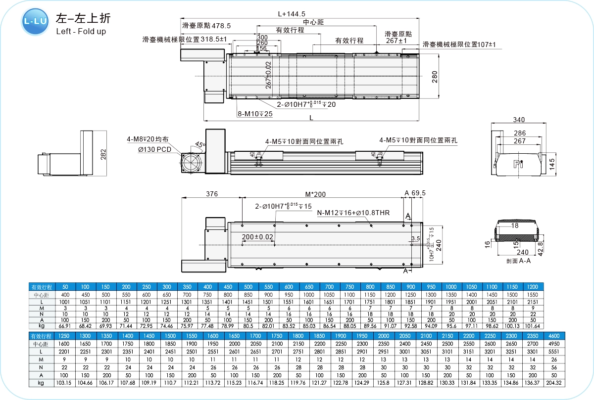 衝程螺距:50-6150毫米