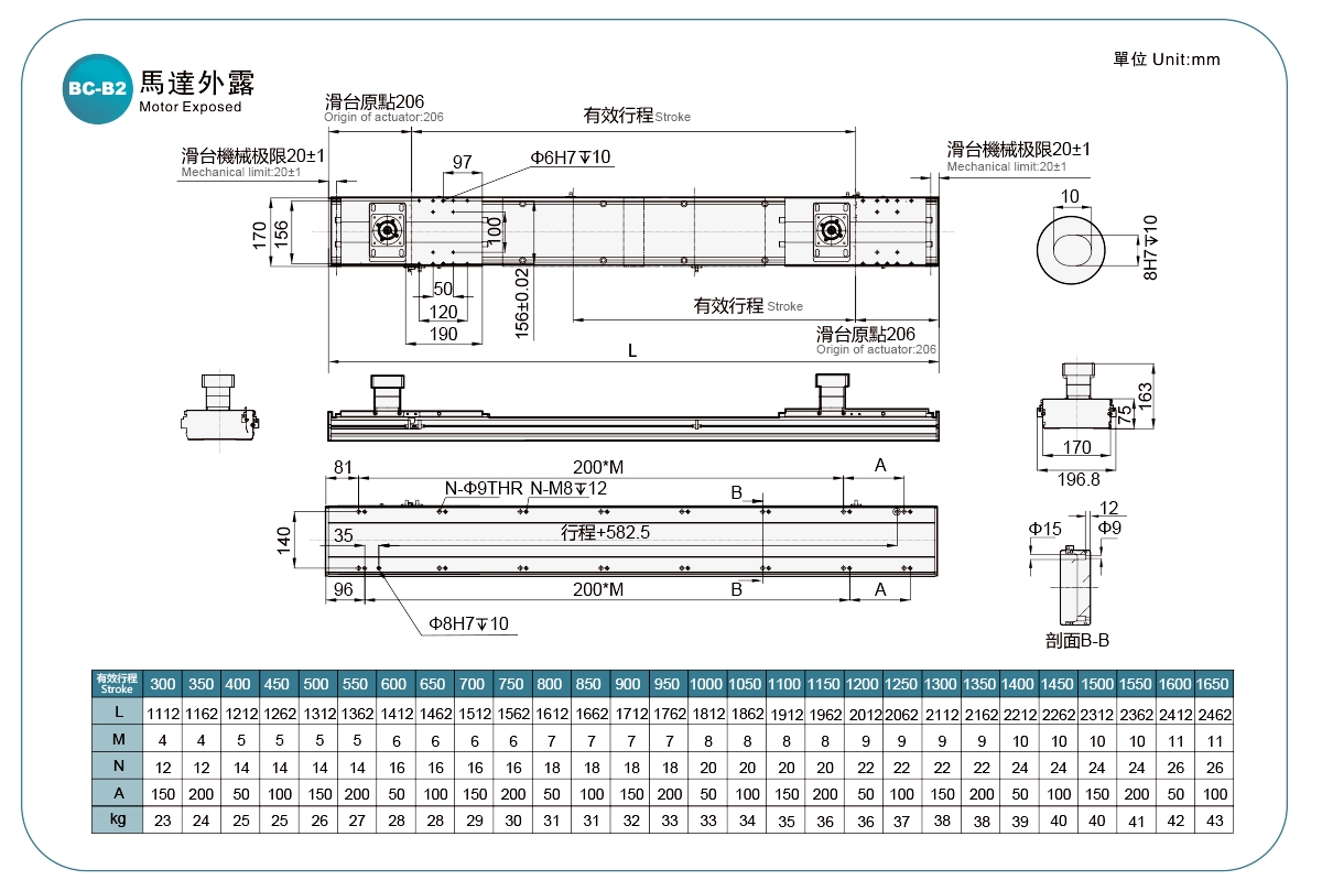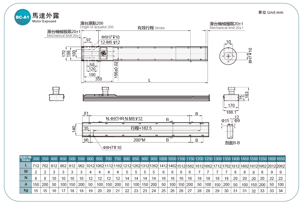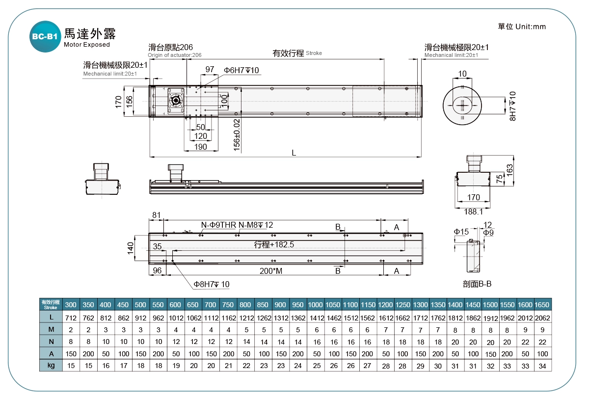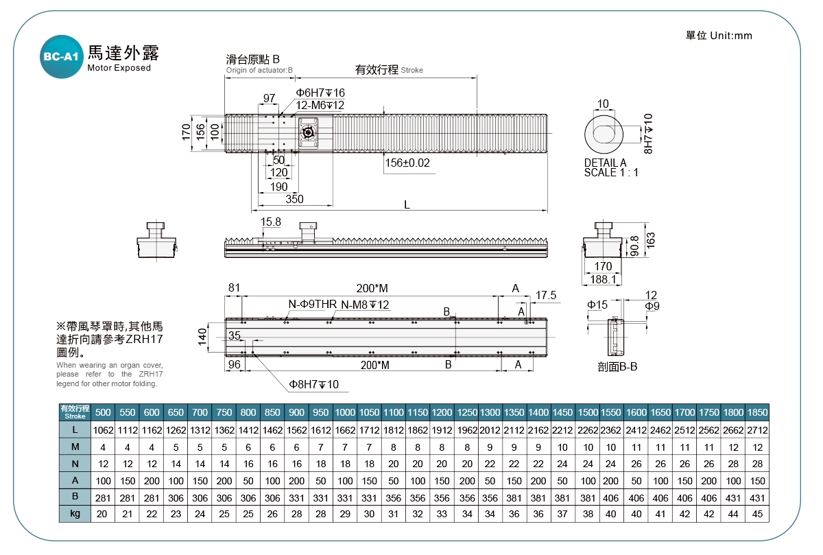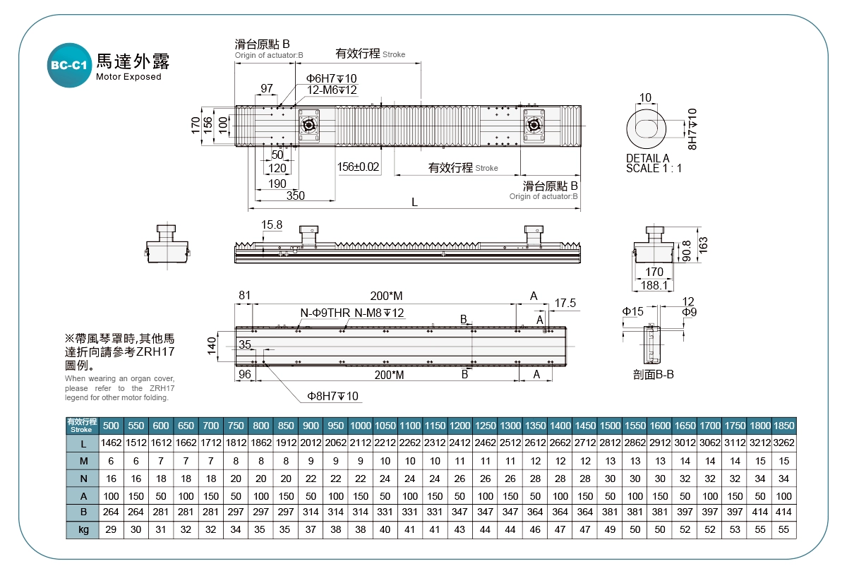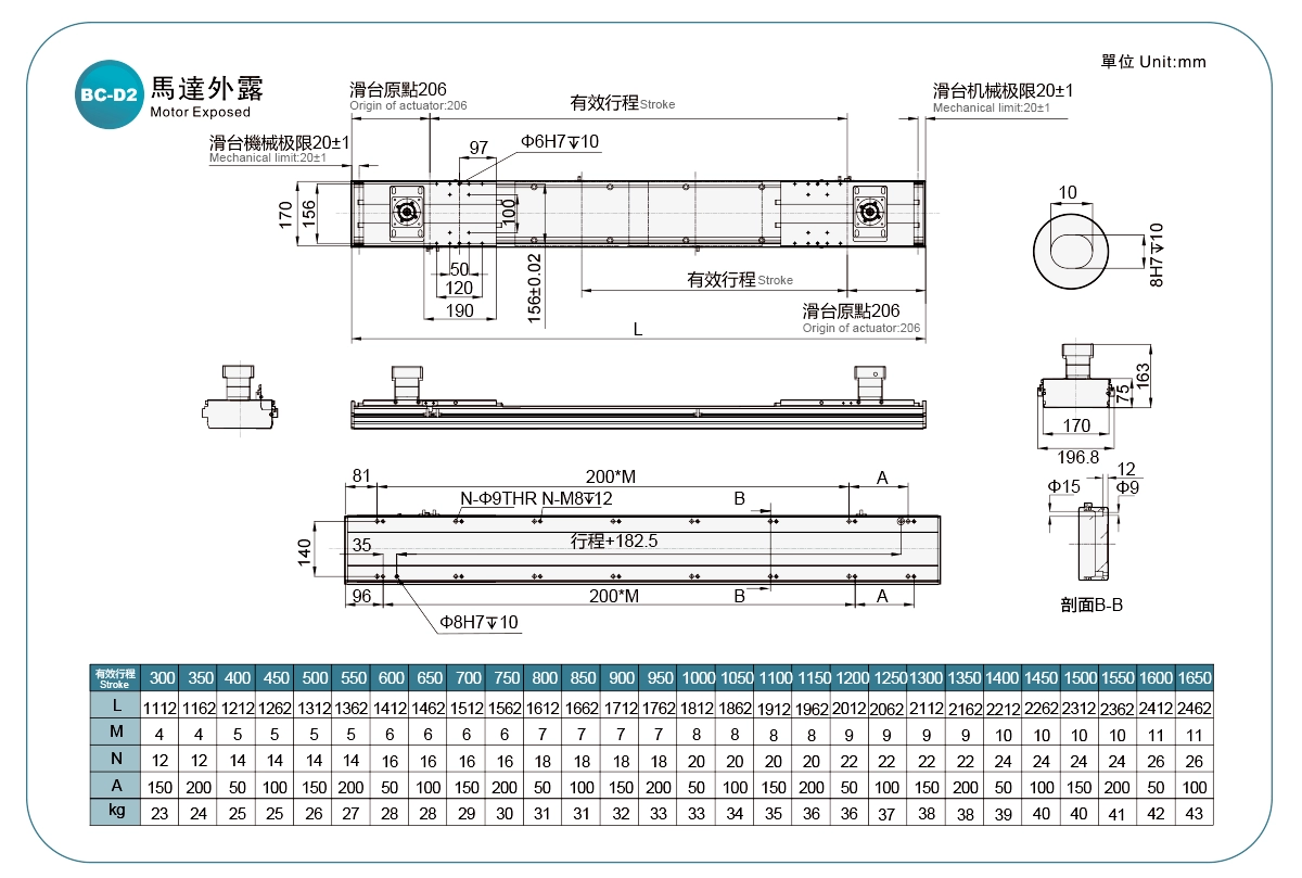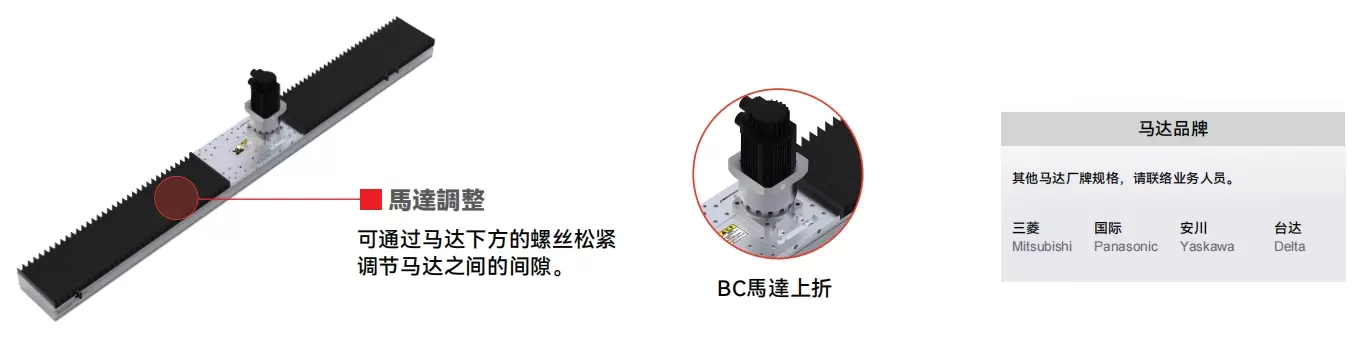 採用鋼帶防護,可防止異物直接落入滑台。滑台最大行程可達1500mm。多向馬達安裝位置可選,使機器設計更加靈活。可與多種品牌的伺服馬達搭配使用。