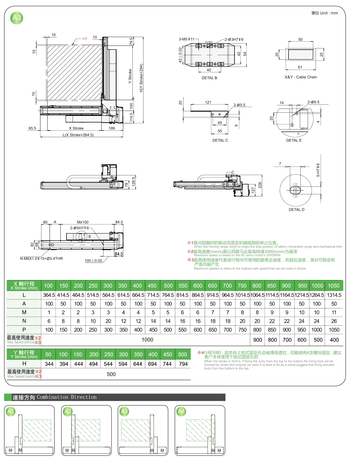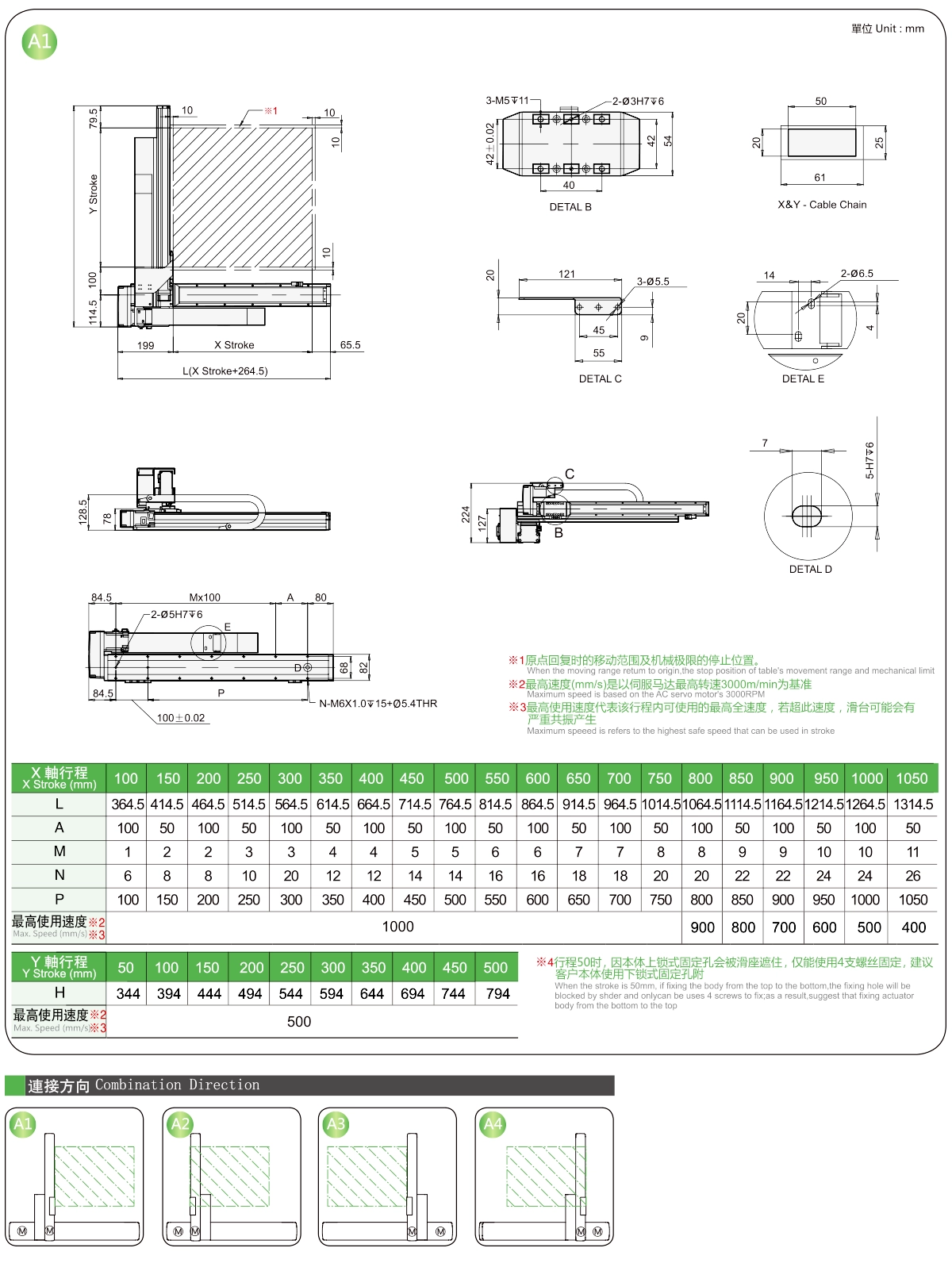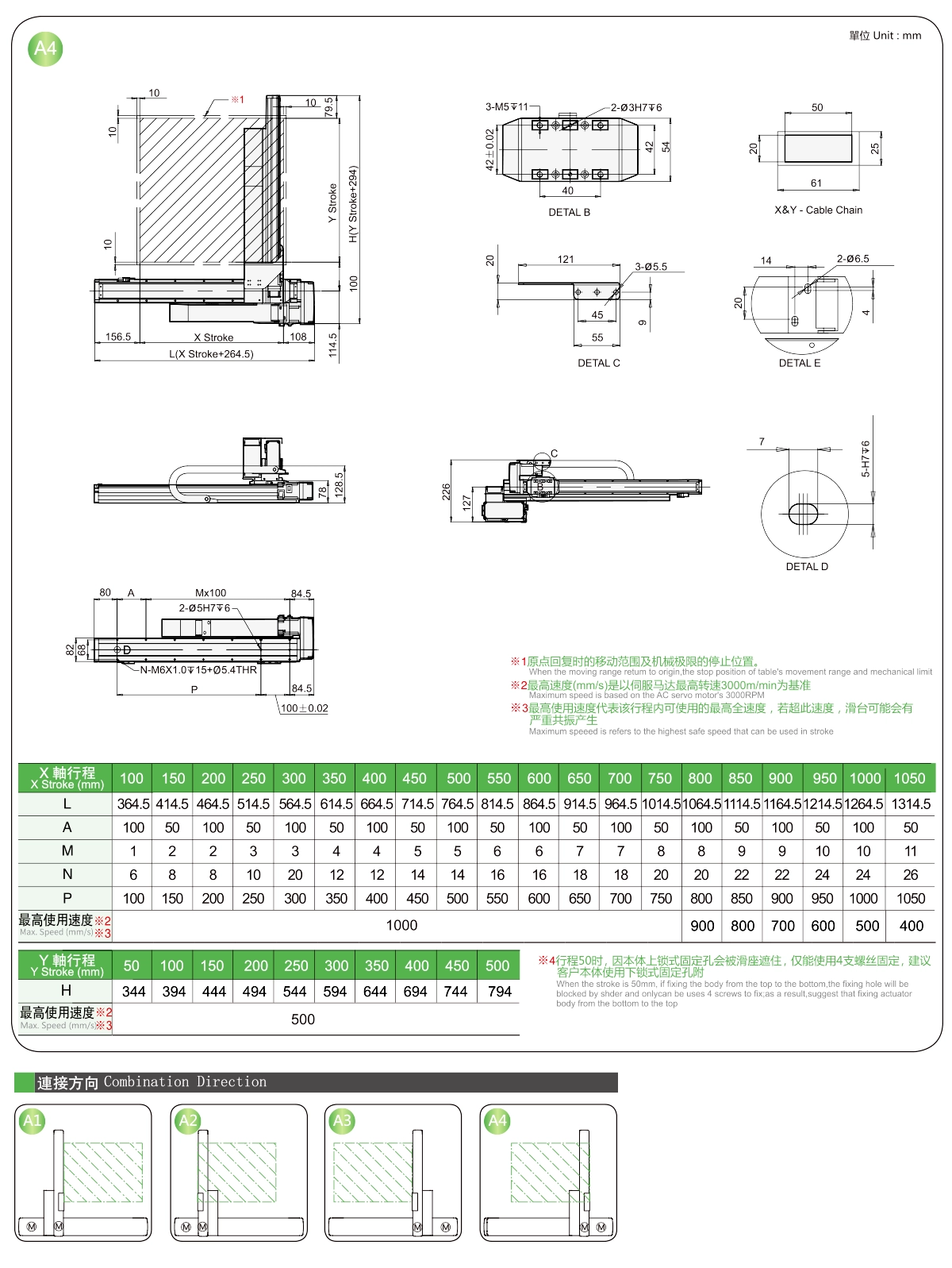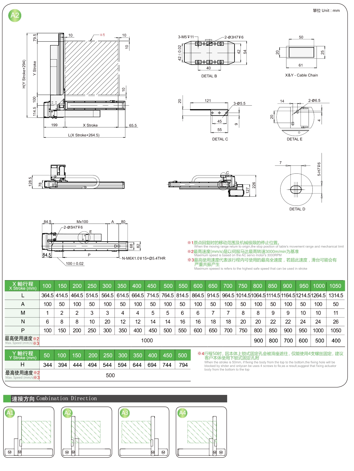 | Y軸行程(毫米) | 50 | 150 | 200 | 250 | 300 | |