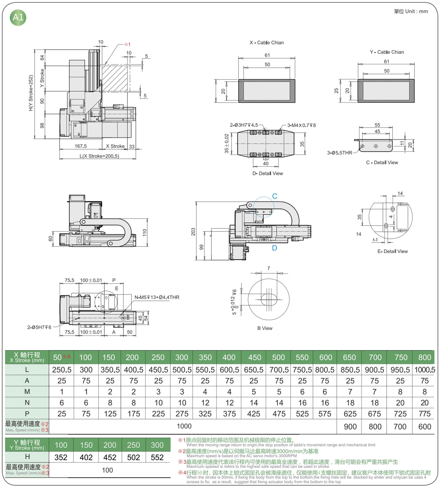 | Y軸行程(毫米) | 100 | 150 | 200 | 250 | 300 |