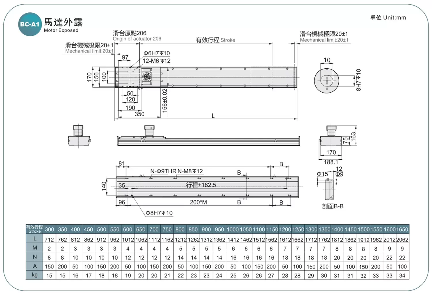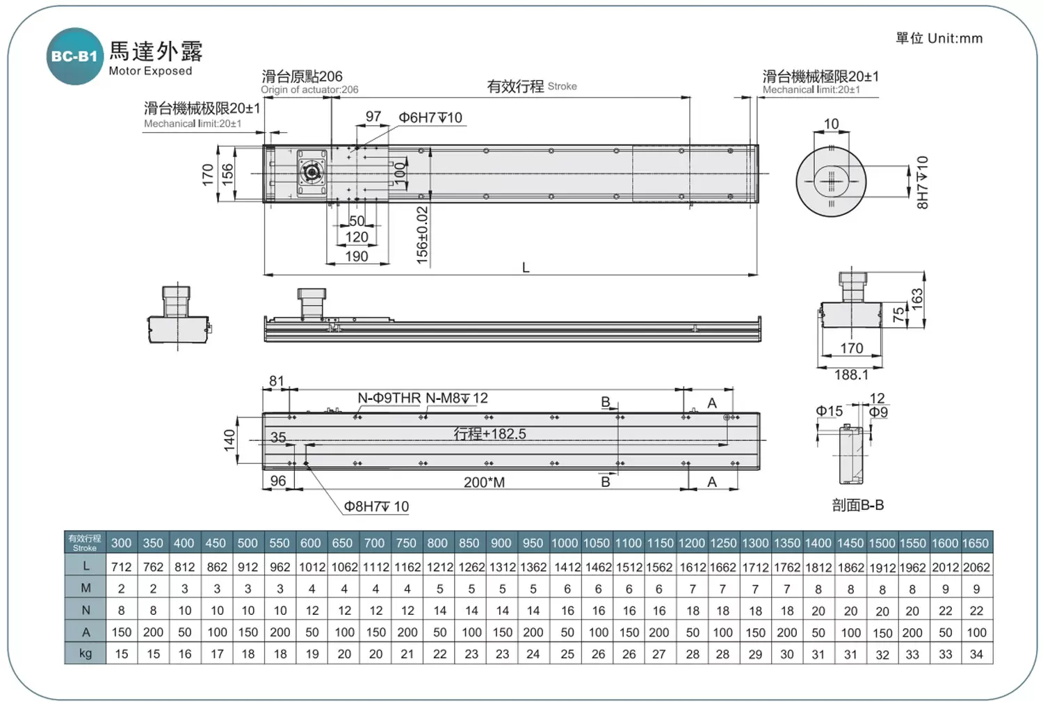 採用鋼帶防護,可防止異物直接落入滑台。滑台最大行程可達1500mm。多向馬達安裝位置可選,使機器設計更加靈活。可與多種品牌的伺服馬達搭配使用。