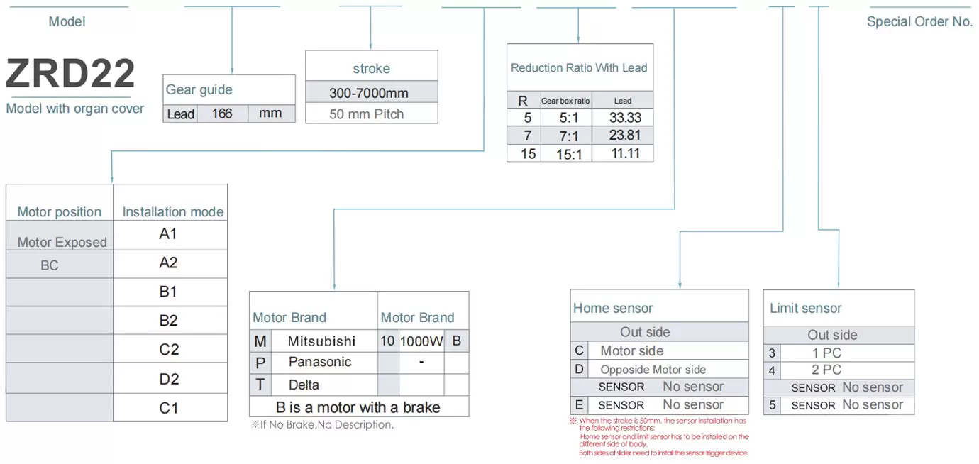 由於採用了齒輪傳動,長行程中不會有絲槓驅動,因此不會出現絲槓纏繞問題。傳動結構由齒條進行線性驅動。