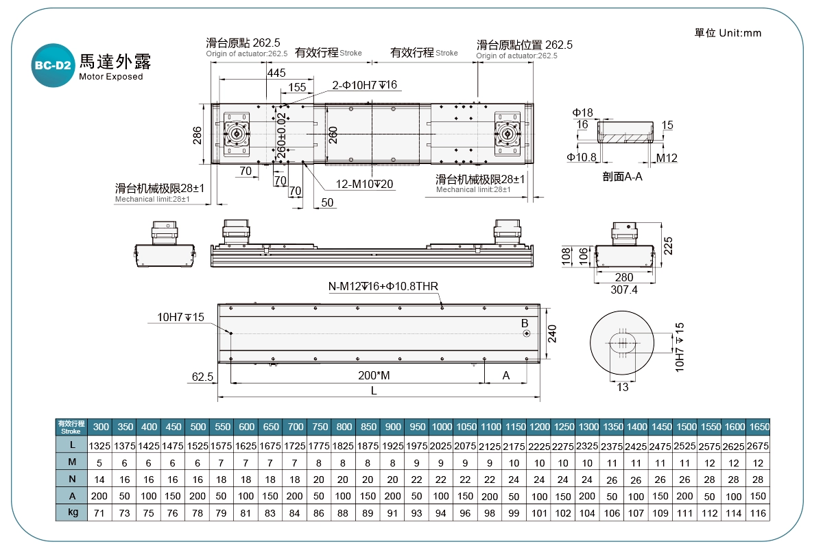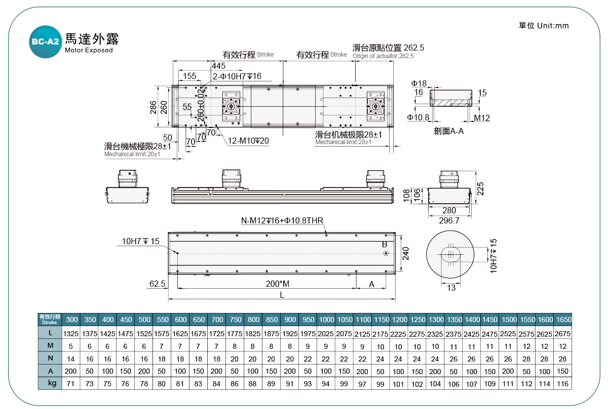 | 最大有效載荷 | 水平方向(公斤) | 160 | 210 | 350 | |