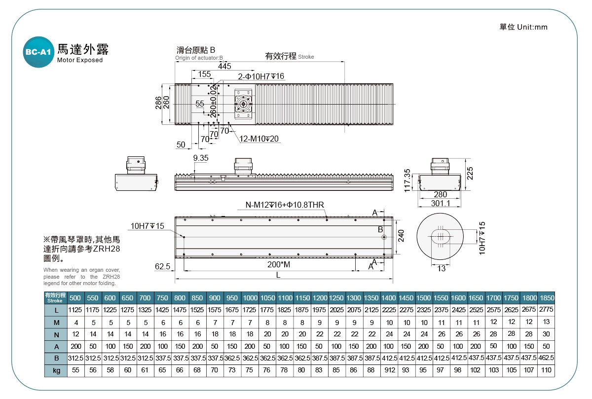 *最高速度取決於伺服馬達的最大轉速(3000轉/分)。